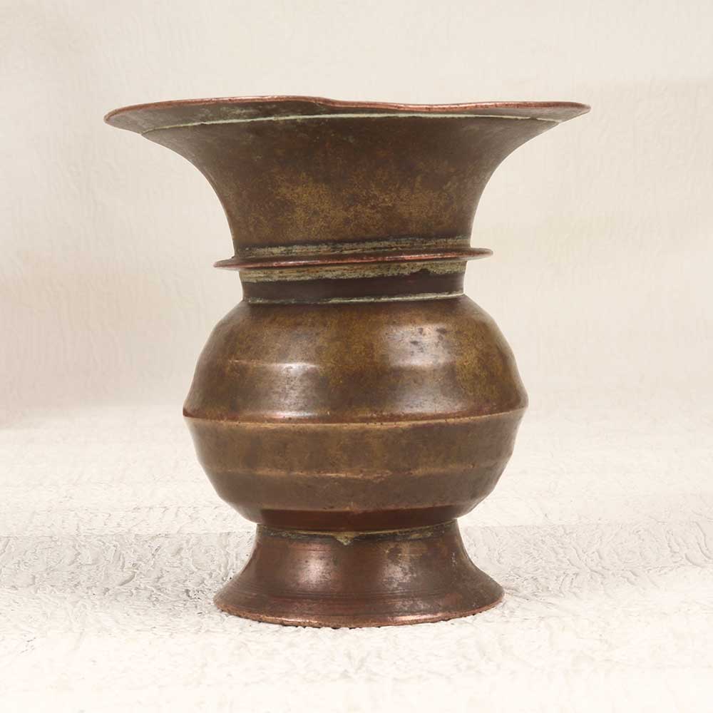 Bring timeless elegance to your home decor with this stunning brass flower pot. Crafted in the classic South Indian Art style, this vintage pot makes a statement with its intricate designs and warm, gleaming finish. With its eye-catching shape, this pot is sure to be the focal point wherever you place it. The vintage brass finish adds a lovely aged look that feels bohemian and chic. Whether you display it as a standalone piece or use it to house a favourite plant, this flower pot brings artistic flair. The artisanal charm of this handcrafted pot makes it a special gift for any occasion. Green thumbs will appreciate its form and function, while decor lovers will adore its unique vintage vibe. Place it in an entryway, living room, or patio to infuse any space with artful elegance. For anyone seeking a statement home accent, this flower pot delivers.