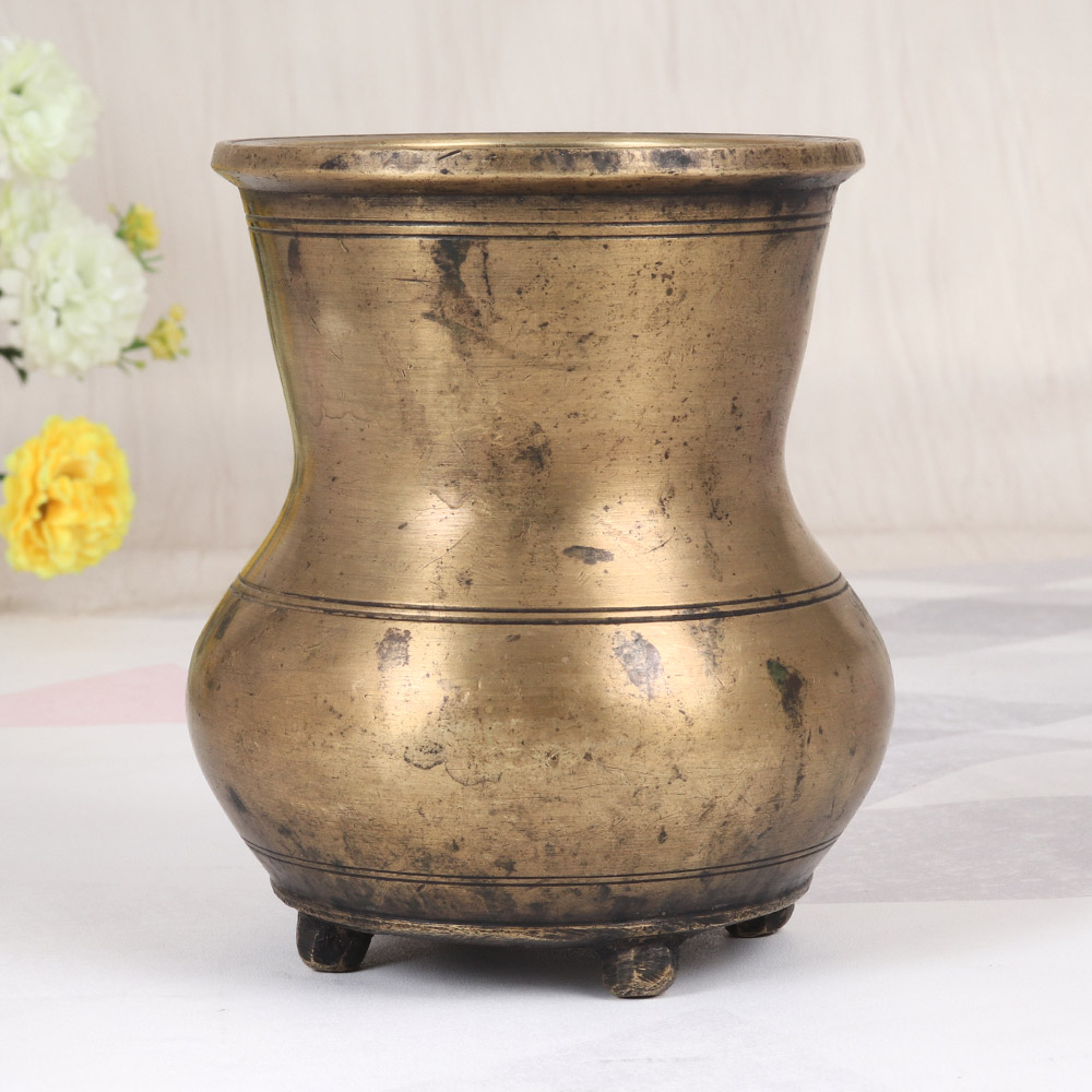 Discover the beauty and significance of the traditional brass panchpatra from South India. This stunning vessel, crafted with meticulous attention to detail, is the perfect companion for your sacred rituals and daily spiritual practice. Bring the timeless traditions of South India into your home with this brass panchpatra. Its simple yet striking appearance will elevate your spiritual practice, creating a serene and sacred atmosphere. Whether you're an experienced practitioner or just beginning your journey, this versatile vessel will become an indispensable part of your rituals. Treat yourself or a loved one to this beautiful brass panchpatra, and experience the profound sense of connection and tranquility it can bring to your life. Embrace the rich cultural heritage of South India and let this stunning piece become a cherished part of your spiritual journey.