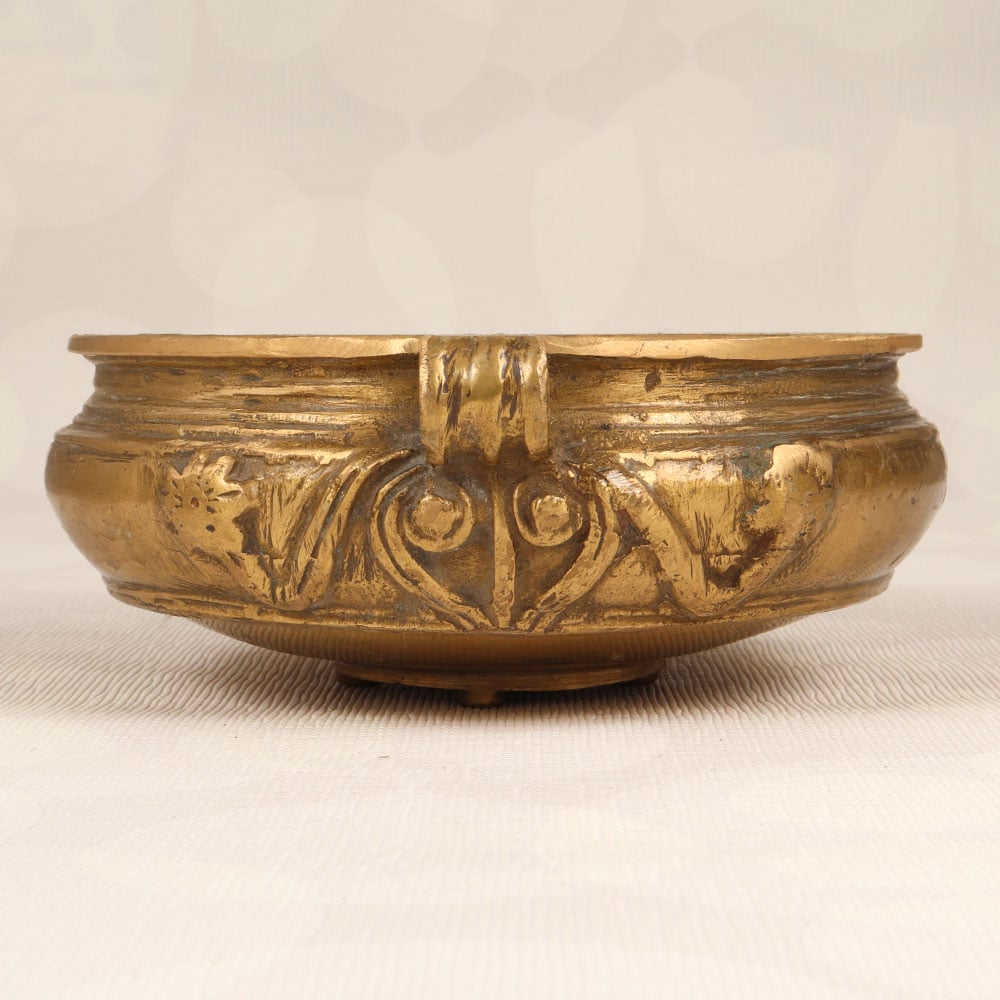 Indulge in the timeless allure of the Vintage Brass Urli which is a masterpiece handcrafted by professional Indian artisans in the rich tradition of South Indian Art. This exquisite Urli features an elegant antique brown finish, adding a touch of vintage charm to any space. The meticulously crafted two handles enhance its aesthetic appeal, reflecting the artistry of a bygone era. Made from high-quality brass, this Urli is a testament to craftsmanship and heritage. Its versatility allows it to grace various settings, be it at home, office, restaurant, hotel, or cafe, serving as a captivating decoration piece. Perfect for collectors of vintage treasures, this Urli seamlessly blends tradition with contemporary design. This piece isn't just an ornate addition to your space; it's a thoughtful gift option for your loved ones on special, festive, or auspicious occasions.