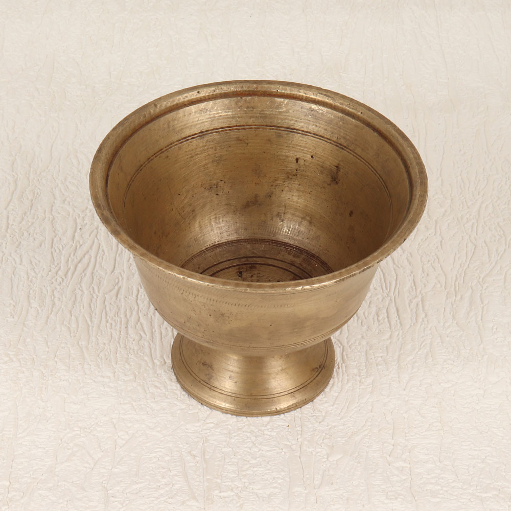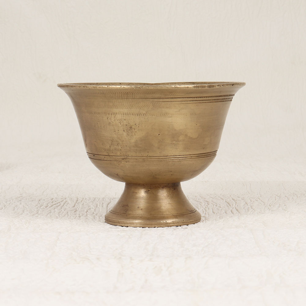 Enhance your spiritual rituals with this exquisite Vintage Brass Kumkum Bowl with a Base Stand that is a testament to South Indian Artistry. Crafted by highly skilled Indian artisans, this timeless piece is meticulously handmade from high-quality brass, boasting an antique brown finish that exudes an aura of heritage and tradition. Designed for prayer, rituals, and havans, this bowl serves as a dignified vessel for kumkum tilak. With its intricate detailing and vintage charm, the bowl can be a focal point in your home, office, restaurant, hotel, or cafe prayer room. Beyond its spiritual purpose, it also doubles as a stunning decorative piece, seamlessly blending tradition with aesthetics. Perfect for gifting on special, festive, or auspicious occasions, this Vintage Brass Kumkum Bowl transcends its functional purpose to become a symbol of cultural richness and craftsmanship.