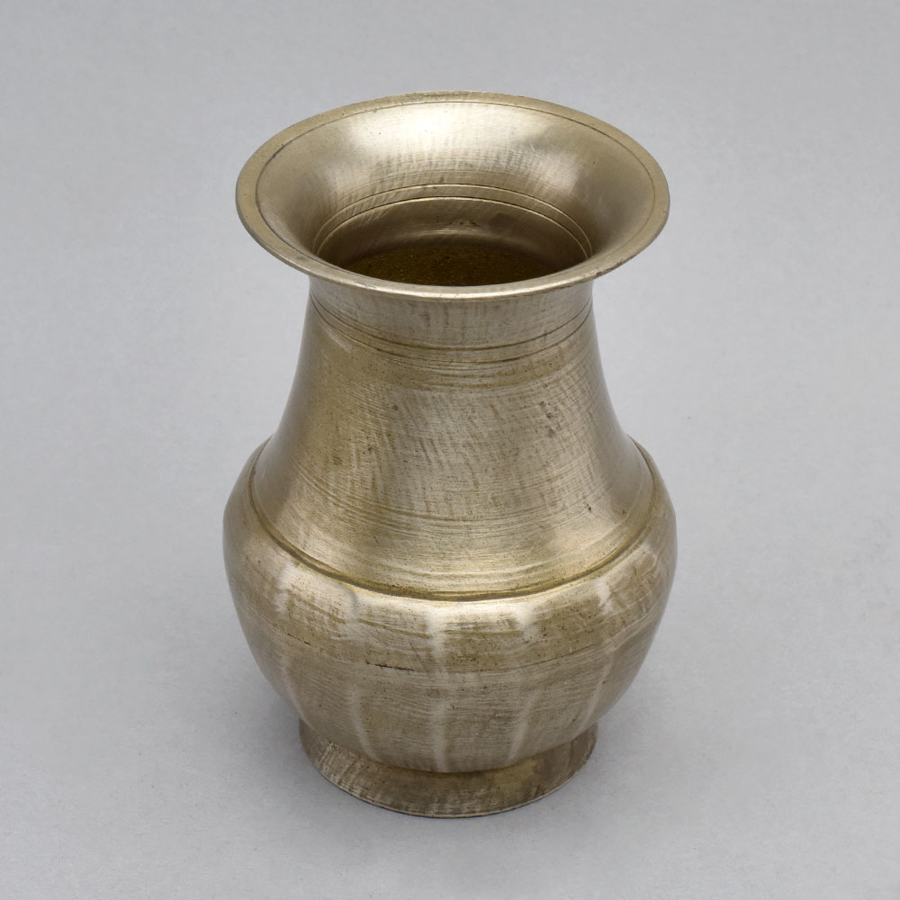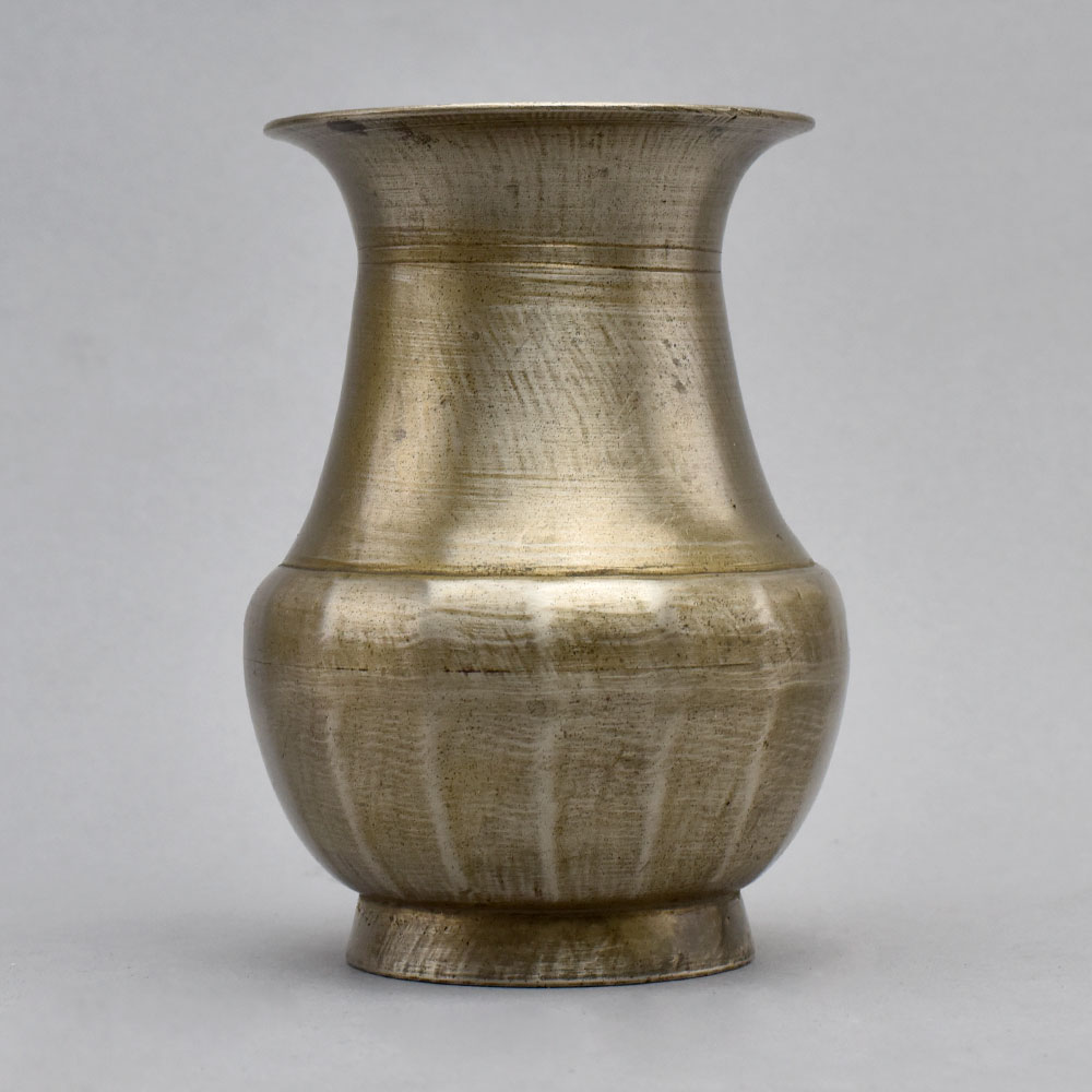 Elevate your home with the captivating Vintage Holy Water Pot. This exquisite piece, crafted from gleaming bell metal, features a simple yet striking design with delicate lines adorning the bottom.