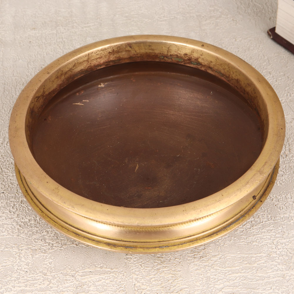 Immerse your space in the timeless charm of South Indian art with our exquisite vintage brass Urli. Meticulously handcrafted by professional Indian artisans, this Urli boasts a warm antique brown finish that accentuates the intricate details of its design. Fashioned from high-quality brass, the artisanal craftsmanship echoes the heritage of South India. This versatile piece seamlessly integrates into various settings, making it a captivating addition to your home, office, restaurant, hotel, or cafe entrance. The Urli's classical form serves as a vessel, traditionally filled with water and adorned with floating flowers, creating an ethereal ambiance that transports you to a bygone era. Perfect for collectors with an eye for vintage treasures, this Urli promises to be a distinctive highlight in any antique assortment. Its aesthetic appeal transcends time, making it a thoughtful and unique gift for your loved ones on special, festive, or auspicious occasions.