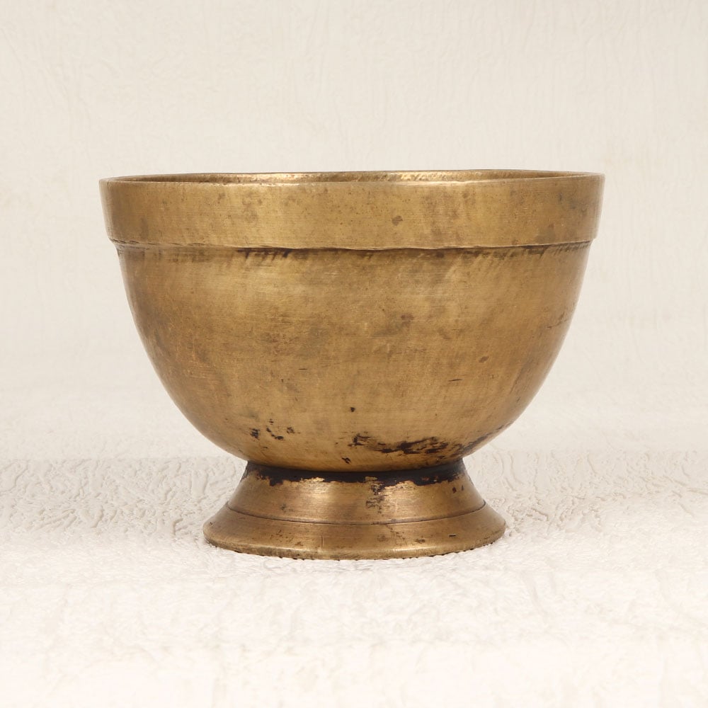 This Vintage Brass Kumkum Bowl with Base Stand is a timeless piece that adds cultural charm to your prayer rituals and havans. Handmade by skilled Indian artisans in the intricate South Indian Art style, this kumkum bowl is crafted from high-quality brass, showcasing a stunning antique brown finish that exudes authenticity and tradition. Perfect for holding kumkum tilak during prayers, this bowl rests gracefully on a matching base stand, enhancing its overall aesthetic appeal. Versatile and elegant, it seamlessly fits into various settings – be it at home, office, restaurant, hotel, or cafe prayer rooms. Beyond its religious utility, this piece serves as a captivating decor item, making it an ideal addition to any vintage collection. Surprise your loved ones with this meaningful and culturally rich gift on special, festive, or auspicious occasions.