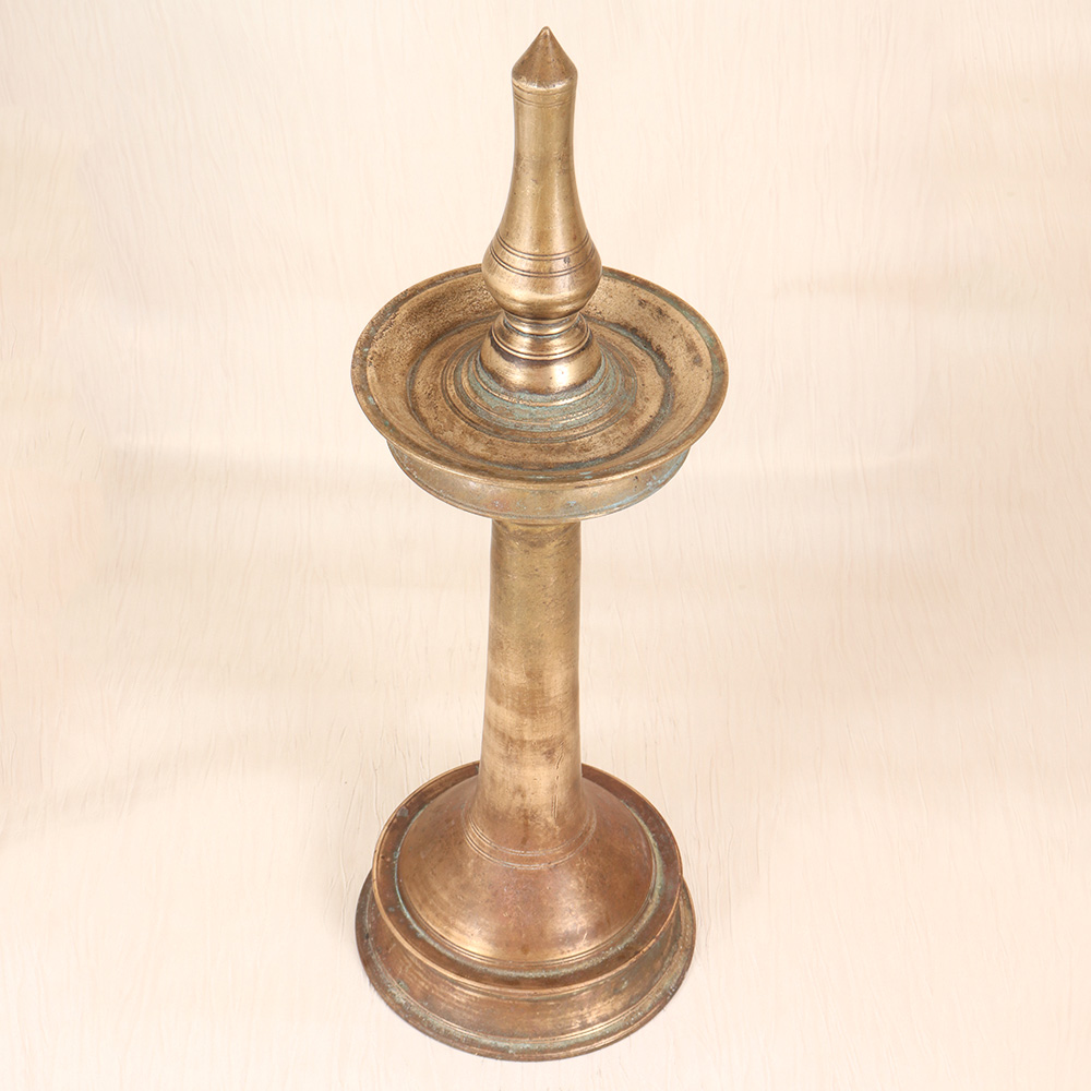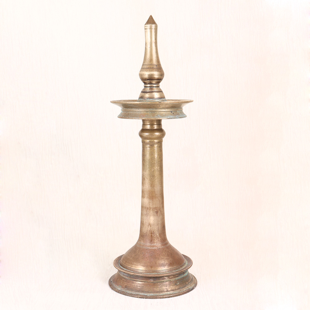 Illuminate your space with the timeless elegance of our Vintage Brass Oil Lamp. This stunning piece, crafted in the rich tradition of South Indian Art, is a captivating blend of form and function that will elevate any room. Bring the allure of a bygone era into your home with this exquisite oil lamp. More than just a source of light, this piece is a work of art that will transport you to the rich cultural tapestry of South India. The plain brown finish lends a timeless, understated elegance, allowing the lamp's stunning brass construction to take center stage. Whether you're looking to add a touch of vintage sophistication to your living room, or seeking the perfect accent piece for your bedroom or study, this oil lamp is sure to captivate. Its warm, flickering flame will cast a gentle glow, creating a serene and relaxing ambiance that soothes the senses. Elevate your space and immerse yourself in the timeless beauty of South Indian craftsmanship with this remarkable Vintage Brass Oil Lamp.