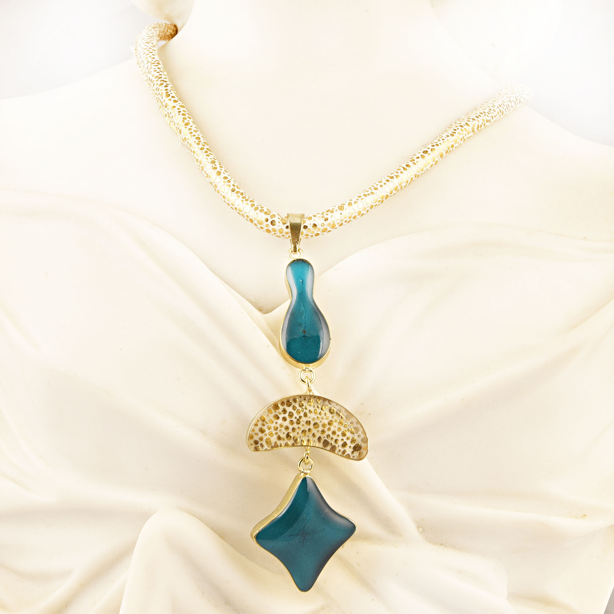 Sparkle Strret G Hanging Necklace New Beautiful Jewellery. Resin Beads With Leather Covered Chain and Brass Clasp.
