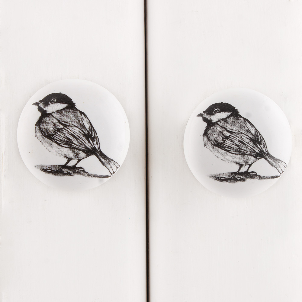 Sparrow Black Bird Flat Ceramic Cabinet Knob