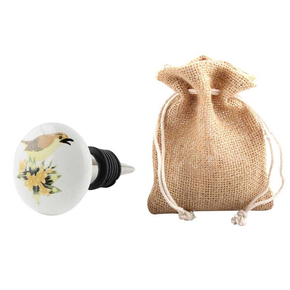 Sparrow Ceramic Wine Bottle Stopper. Zinc Alloy Wine Bottle Stopper with Attractive Jute Bag Packaging.
