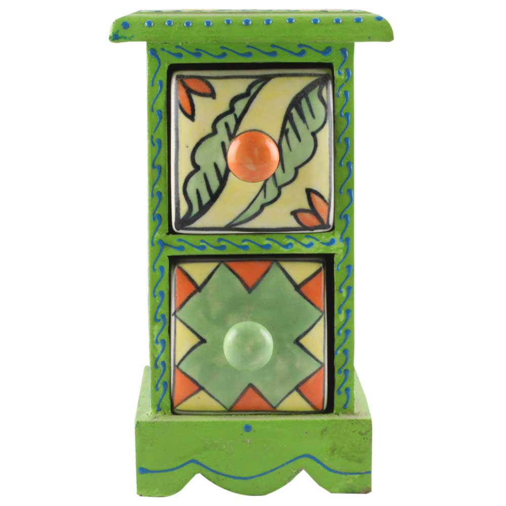 Spice Box-1387 Masala Rack Container Gift Item. Ceramic Drawers in Wooden Frame. The Spice Boxes are designed with different patterns. These boxes are made using natural wood which does not harm the purity of spices.
