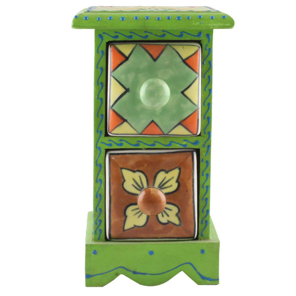 Spice Box-1391 Masala Rack Container Gift Item. Ceramic Drawers in Wooden Frame. The Spice Boxes are designed with different patterns. These boxes are made using natural wood which does not harm the purity of spices.