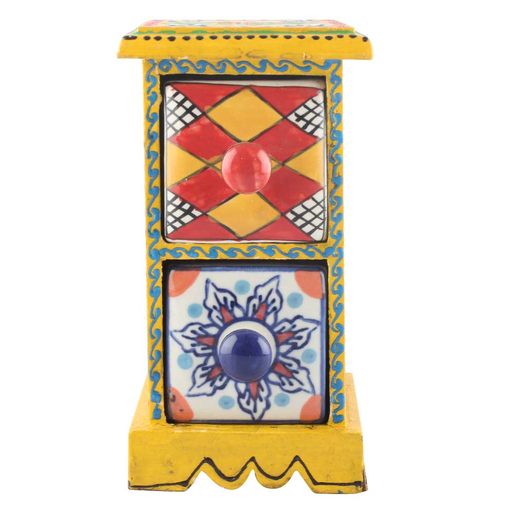 Spice Box-1020 Masala Rack Container Gift Item. Ceramic Drawers in Wooden Frame. The Spice Boxes are designed with different patterns. These boxes are made using natural wood which does not harm the purity of spices.