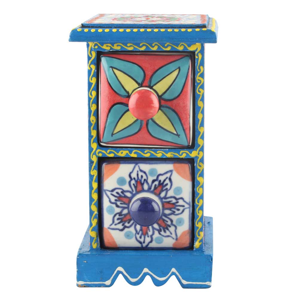 Spice Box-1037 Masala Rack Container Gift Item. Ceramic Drawers in Wooden Frame. The Spice Boxes are designed with different patterns. These boxes are made using natural wood which does not harm the purity of spices.