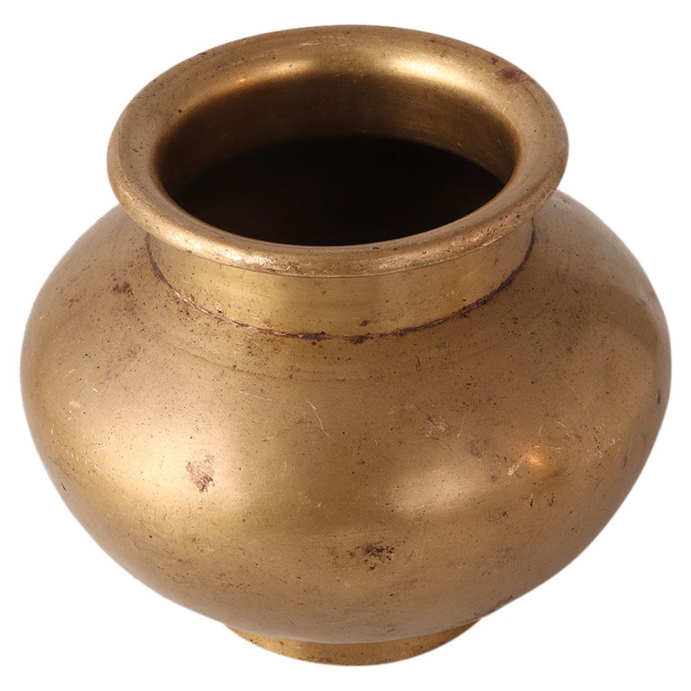 A plain brass water pot for worship in temples and home. It is used to store sacred water. It can be used to display in your collection.