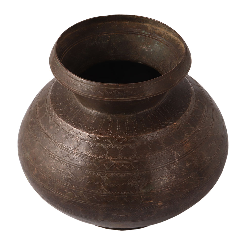 Spiritual Tribal Brass Pot In Dark Finish