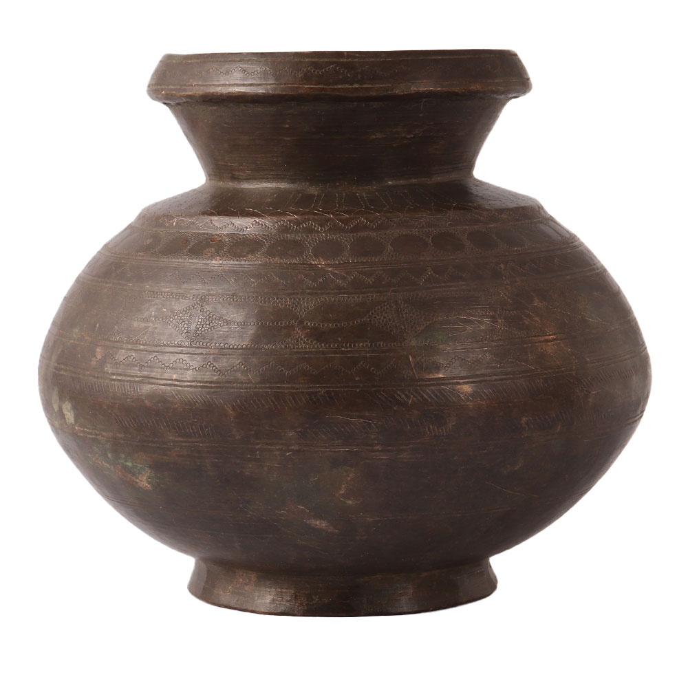 • Spiritual Tribal Brass Pot In Dark Finish