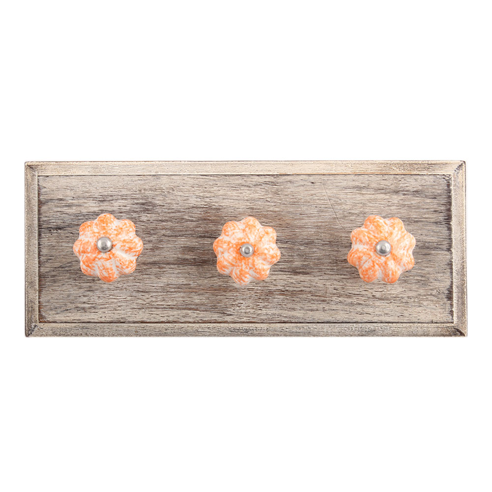 Sprinkled Orange Ceramic Wooden Hook. A Perfect Complement to the Soft Tone of the Wood are these White Traditional Hat & Coat Hook Made of Genuine Porcelain and Brass. It can be use to Hang Jewellery, Leashes, Towels, Scarves, Light Weight Sweaters, Caps Etc.