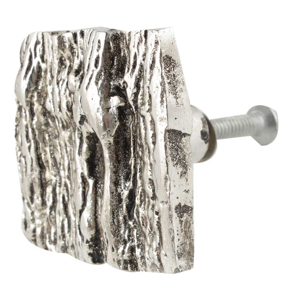 Square Bark Shape Antique Silver Aluminium Dresser Knob
