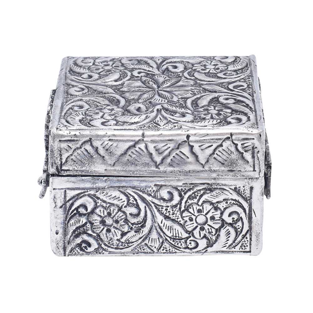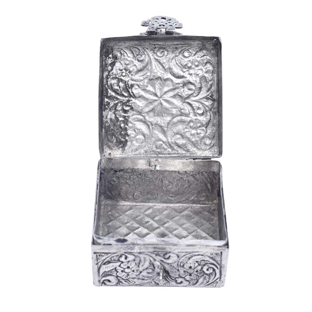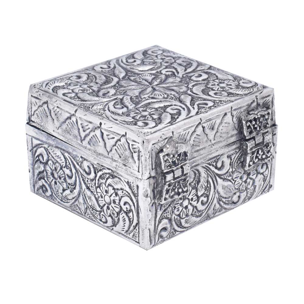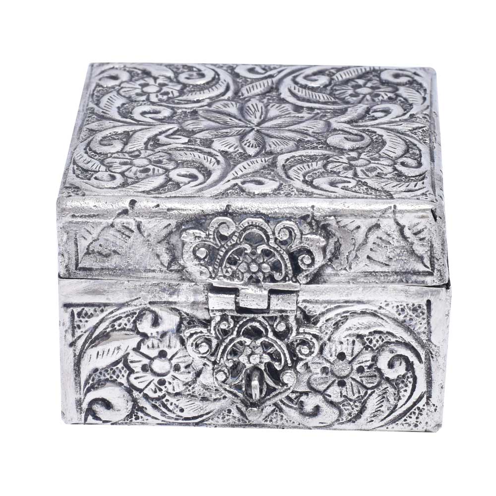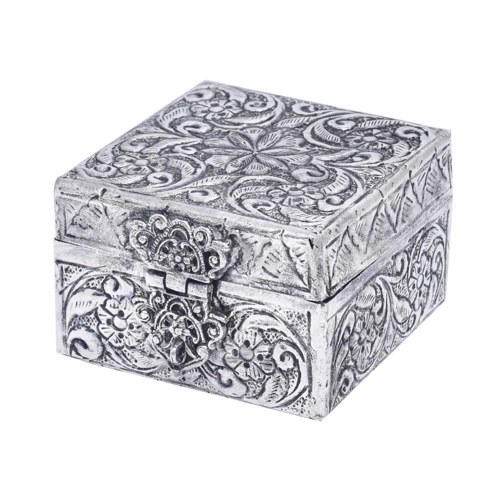 A Silver Plated Keepsake Box with Ornaments is a decorative and functional item that is used for storing and organizing small items such as jewelry, trinkets, and keepsakes. The box is typically made of a metal base covered in silver plating and decorated with ornate details and embellishments. The ornaments on the box can vary in design and style, ranging from intricate engravings to raised reliefs, and add an extra touch of elegance to the overall piece. These keepsake boxes are often used as gift items and can be found in a variety of sizes and shapes. When cared for properly, a silver plated keepsake box with ornaments can last for many years and retain its beauty and value as a decorative item and functional storage solution. They are highly sought after by collectors and lovers of antique silverware.