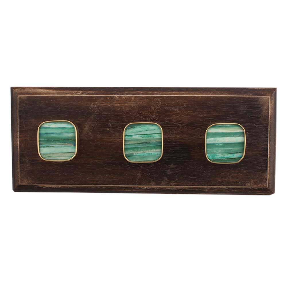 Square Sea Green Bone and Metal Wooden Hooks