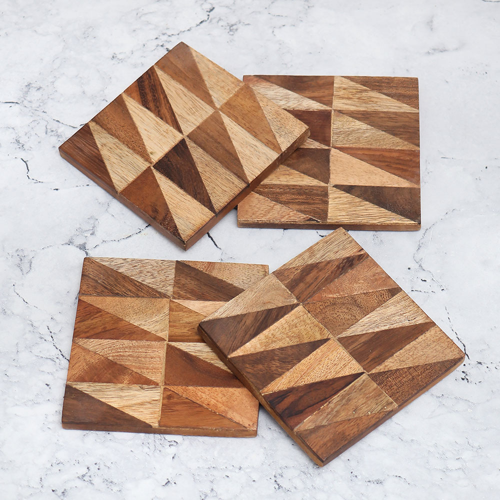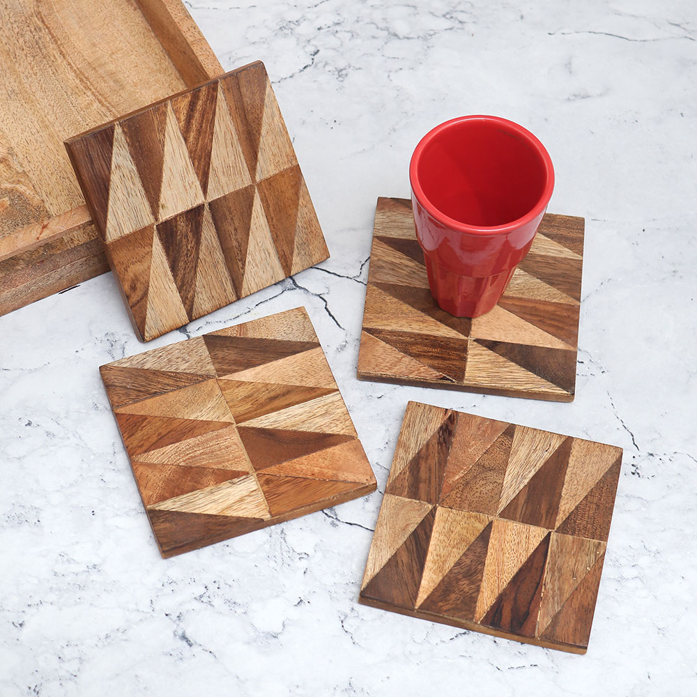 Buy a Wooden Tea Coaster Set online which is a delightful ensemble of four coasters, meticulously crafted from high-quality wood by professional Indian artisans. Each coaster boasts a charming square shape, lovingly hand-carved to perfection. With its stunning brown-coloured pattern and antique finish, this coaster set transcends its practical purpose and becomes an enchanting decorative piece for your home or office. These coasters serve a dual function, providing an elegant solution for holding water, tea, juice, or coffee glasses. Whether used at home, office, restaurant, hotel, or cafe, they effortlessly protect surfaces from unsightly stains. The superior craftsmanship ensures their durability, making them a long-lasting addition to any setting. These Wooden Tea Coasters also make for an exceptional gift option for your loved fours on special or festive occasions. Their timeless appeal and the artistry behind their creation will undoubtedly leave a lasting impression.