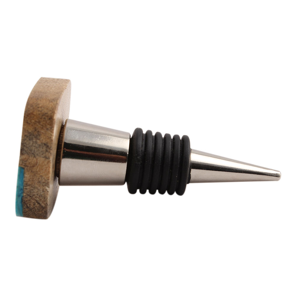 Square Striped Wooden Wine Stopper.zinc alloy wine bottle stopper with attractive Jute Bag Packaging.