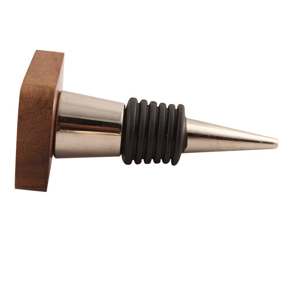 Square Wooden And Resin Wine Stopper. Zinc Alloy Wine Bottle Stopper with Attractive Jute Bag Packaging.