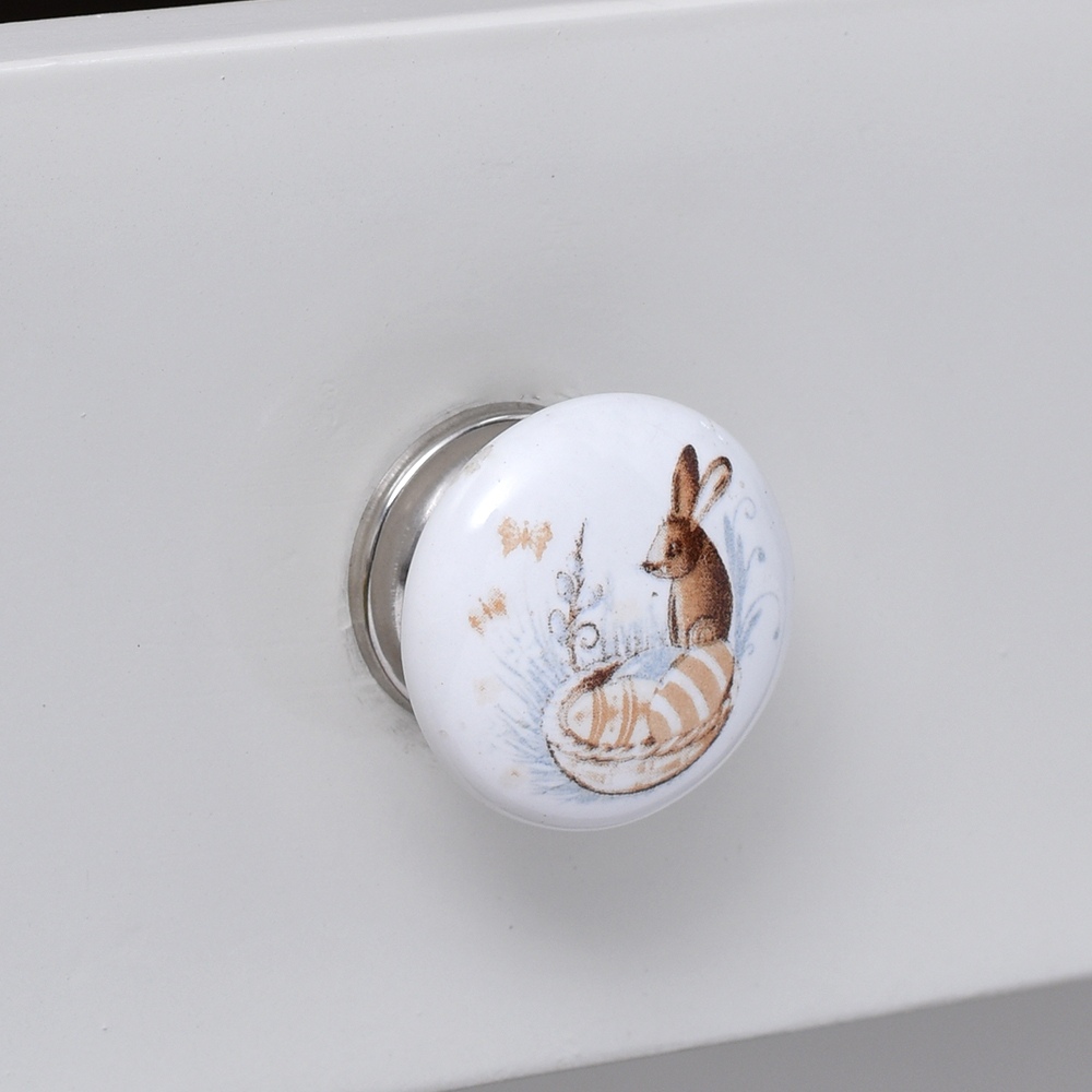 The flat, ceramic design of this dresser knob beautifully embodies the charm of a squirrel, making it a fantastic option for nature lovers or anyone seeking to introduce a fun, animal-themed element to their space. Its neutral colors blend seamlessly with various home decor styles, from rustic to contemporary.