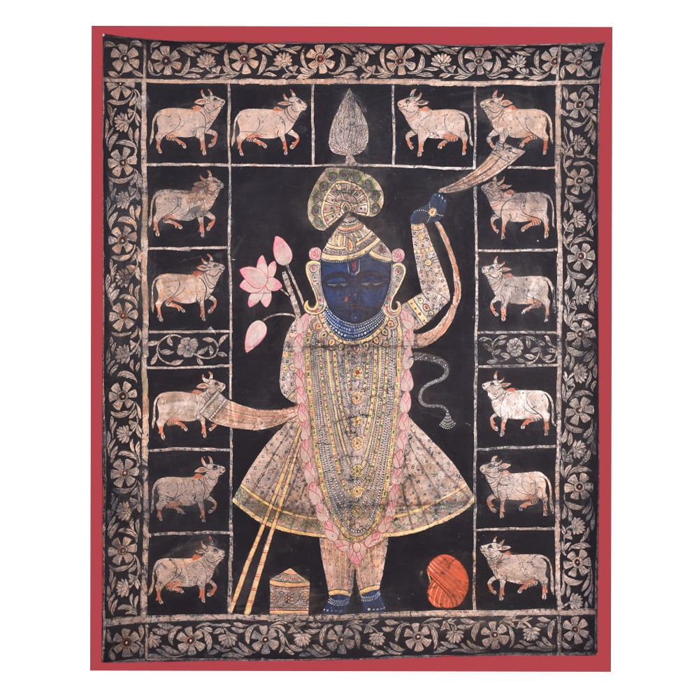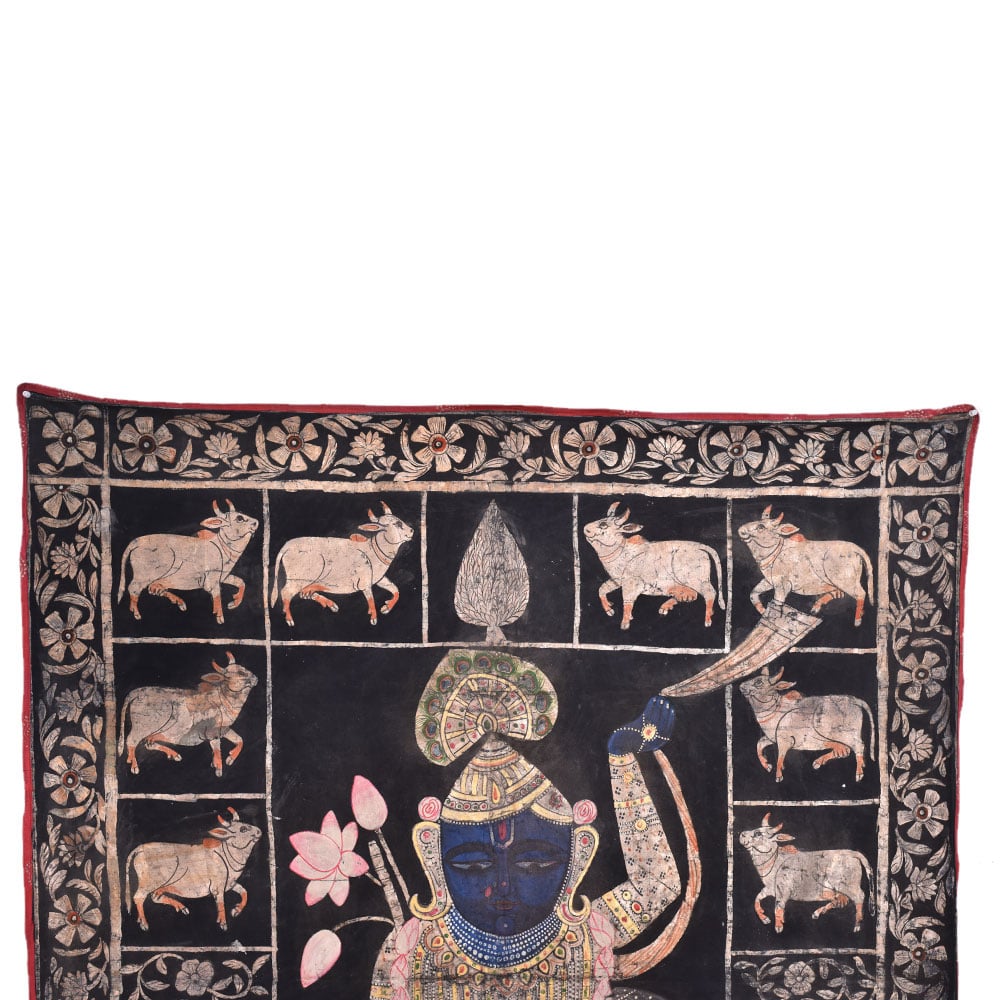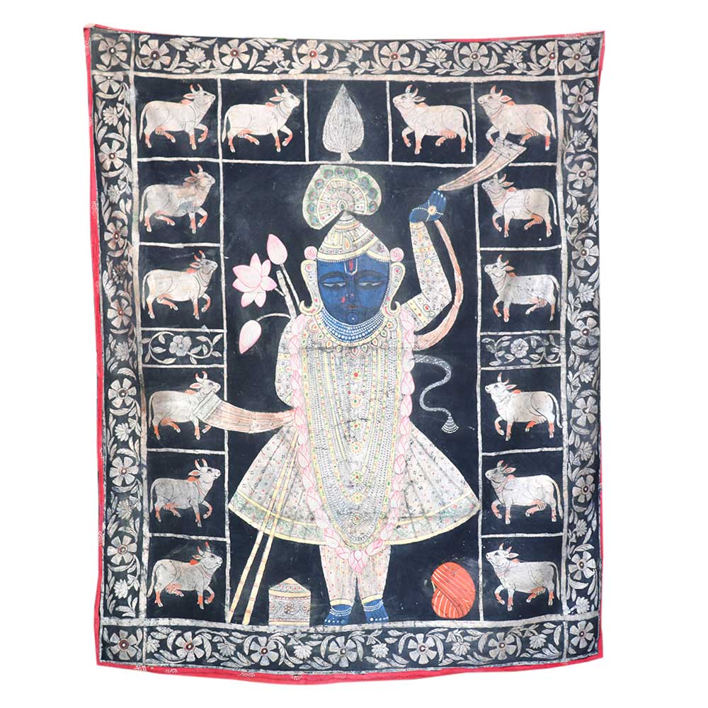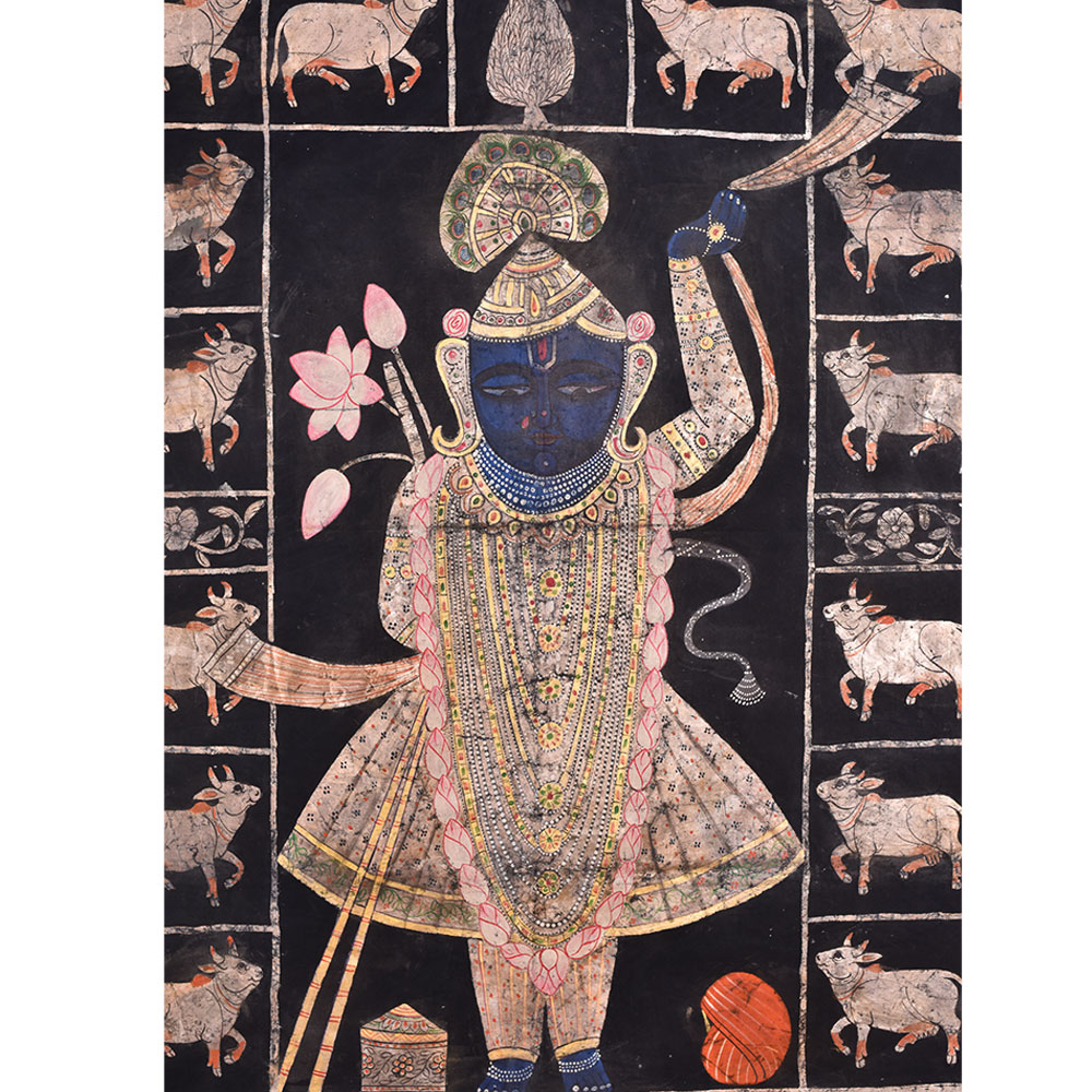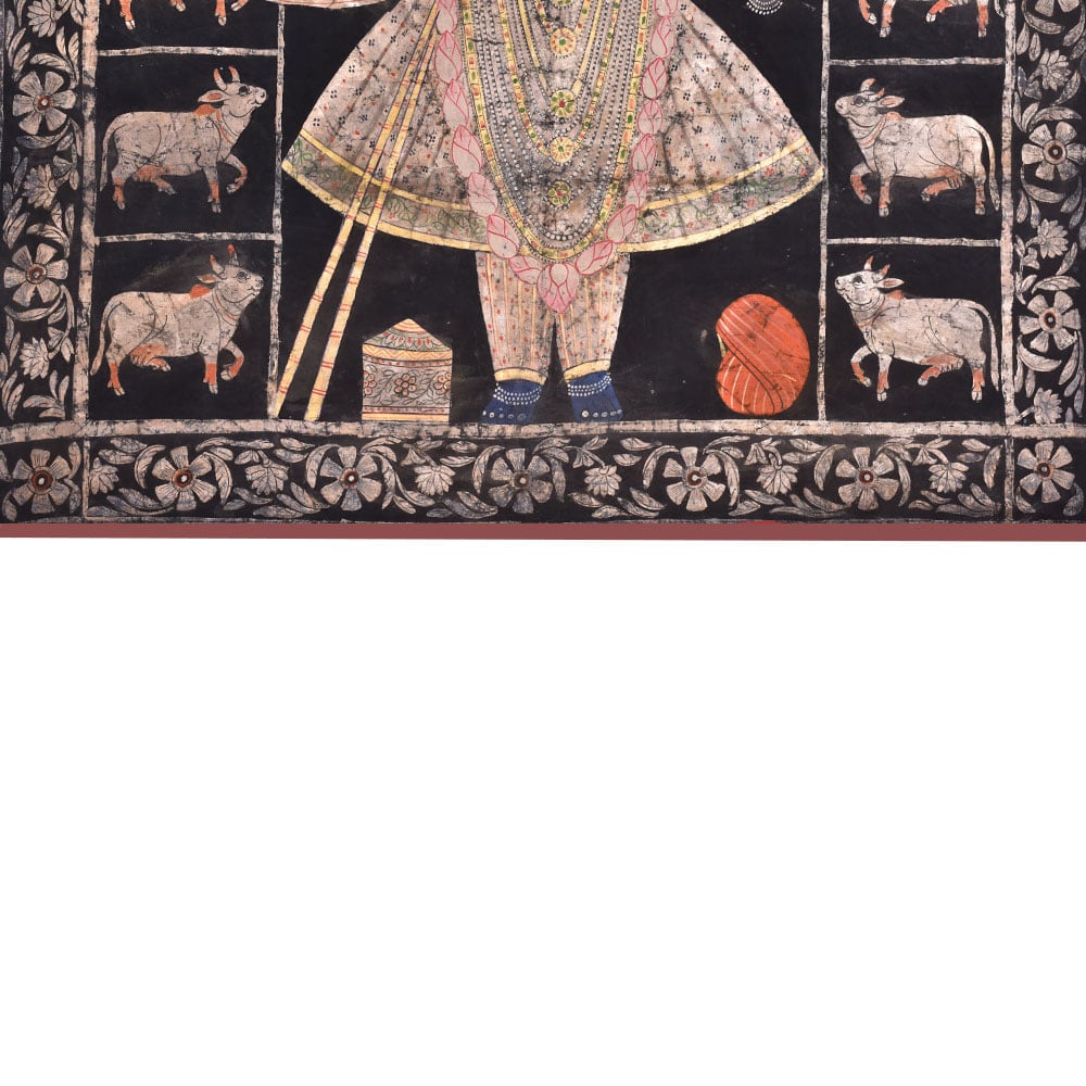 • Srinathji Pichwai painting With Cows On Black Fabric