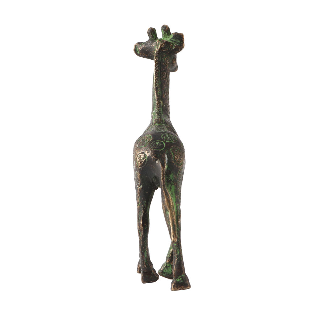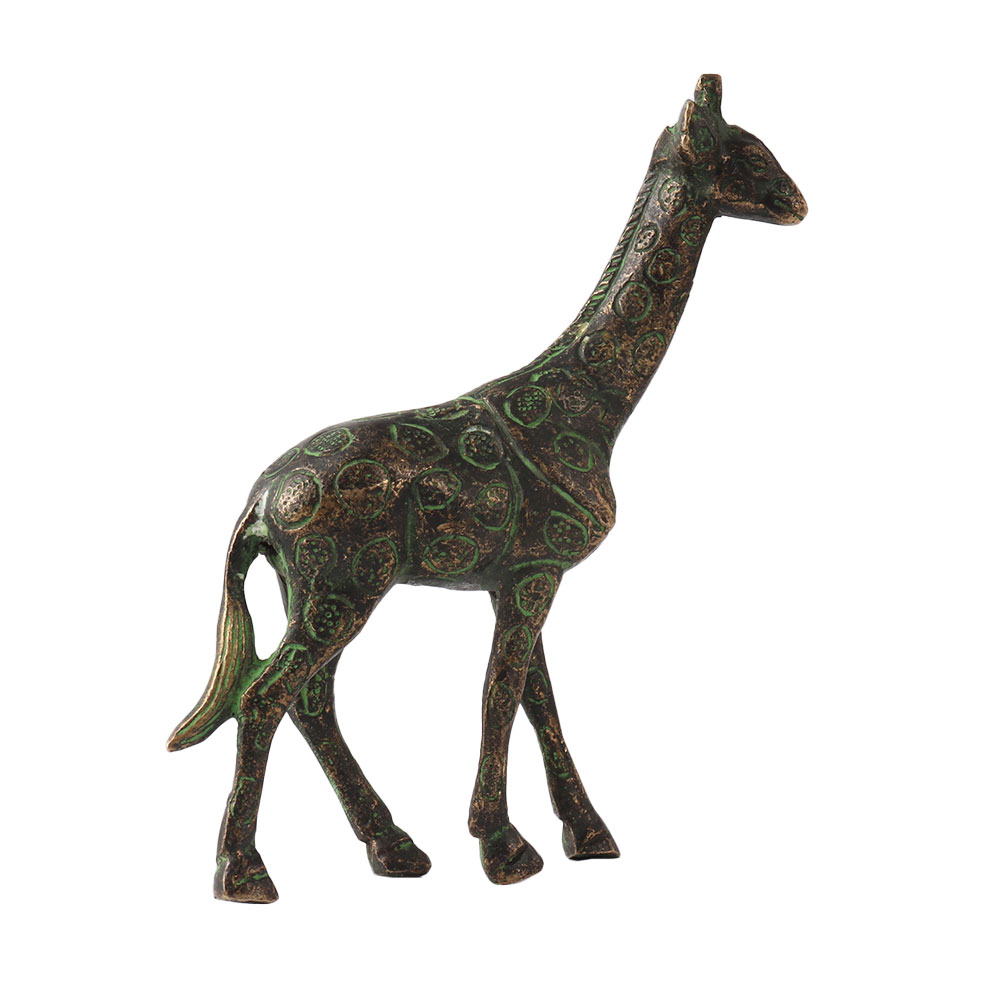 Brass Giraffe transforms tired, outdated furniture into something new and cheerful! . Green coloured brass Giraffe statue suitable for paper weights and table decorations. Keep one on your office table and you will be admired for its appearance. Give your collection a fresh lease on life. This handcrafted brass Giraffe statue may bring some Indian flair to any area design or enrich your home's decor. This item is great for giving as a gift. This brass décor item adds to the decor while also creating a sense of safety and tranquilly in the home. This is excellent for use at home or at work. A substantial personal and professional collection.