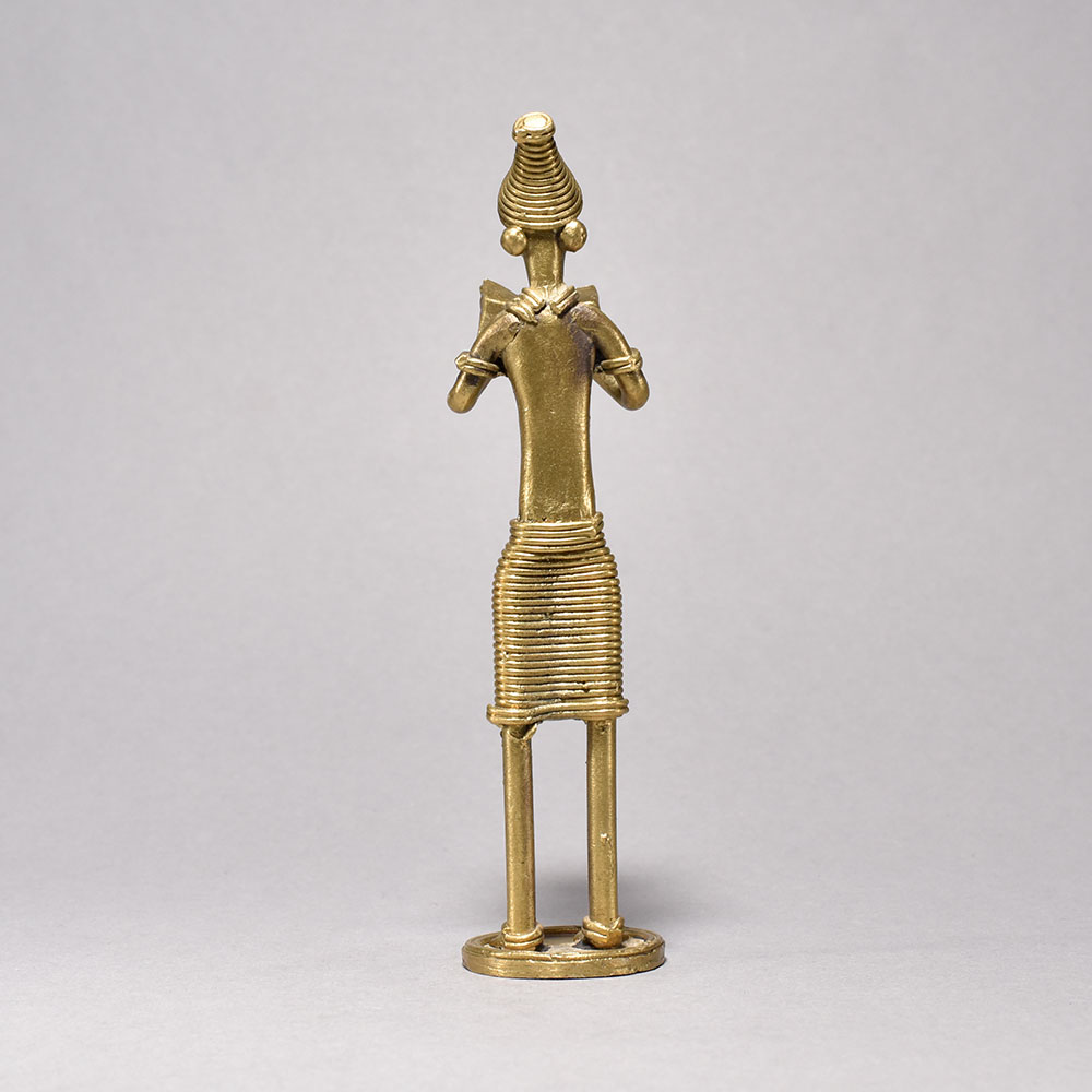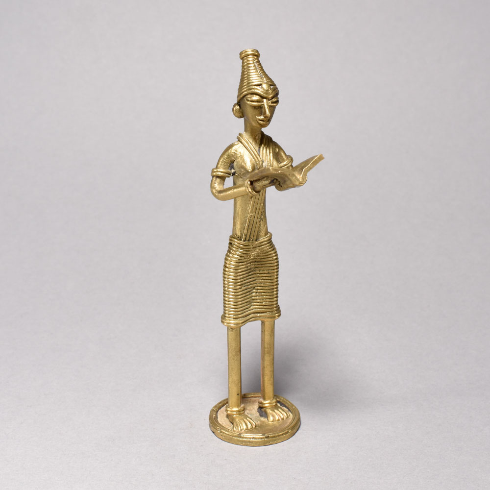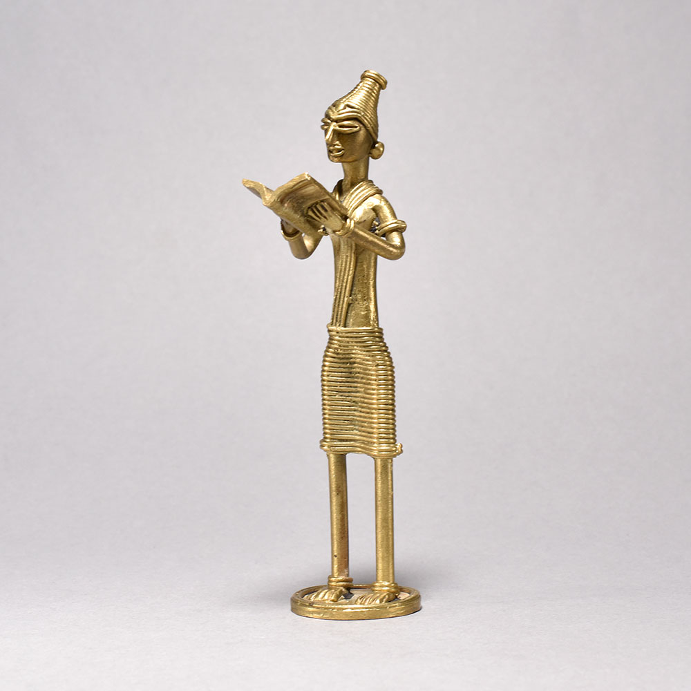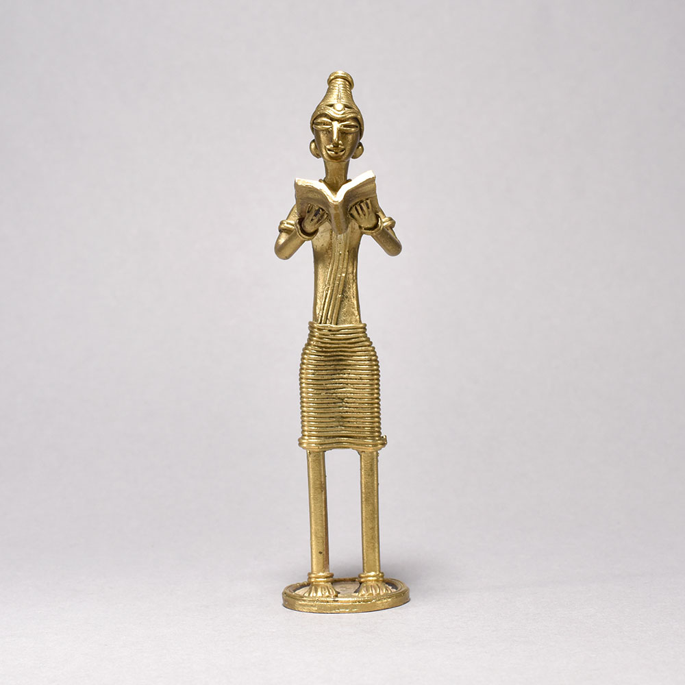 Discover the captivating essence of tribal culture in this stunning metal art piece. Behold the beauty of women in traditional attire, standing proud and immersed in the pages of a book - a testament to the power of knowledge and the richness of Orissa art.This exquisite artwork transports you to the heart of a tribal community, where knowledge and tradition intertwine. The intricate detailing and lifelike figures invite you to pause and appreciate the depth of this cultural expression. Display this masterpiece in your home to infuse your space with the inspiring spirit of these remarkable women. Whether you're an art enthusiast, a lover of global culture, or simply seeking a captivating conversation piece, this tribal women sculpture is a must-have. Immerse yourself in the rich heritage it represents and let it inspire you to explore the diversity of the world. Handcrafted metal sculpture from Orissa, India This timeless piece is handcrafted by skilled artisans using time-honored techniques, ensuring each creation is truly one of a kind. Its versatile design makes it suitable for living rooms, bedrooms, offices, or meditation spaces, bringing a sense of heritage and style wherever it is displayed.