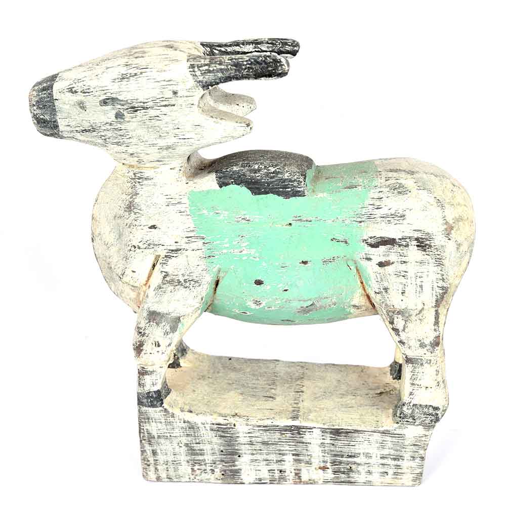 Standing Wooden Cow with Pastel Green Band on the Back.