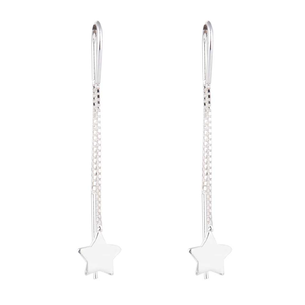 Star Space 92.5 Sterling Silver Dangle Earrings where there is a lovely chain with star charm at base of these dangle best suited for weddings, engagements, cocktail part, dinner date, valentine day or anniversary. Gift it to your near and dear ones on special occasions and functions.