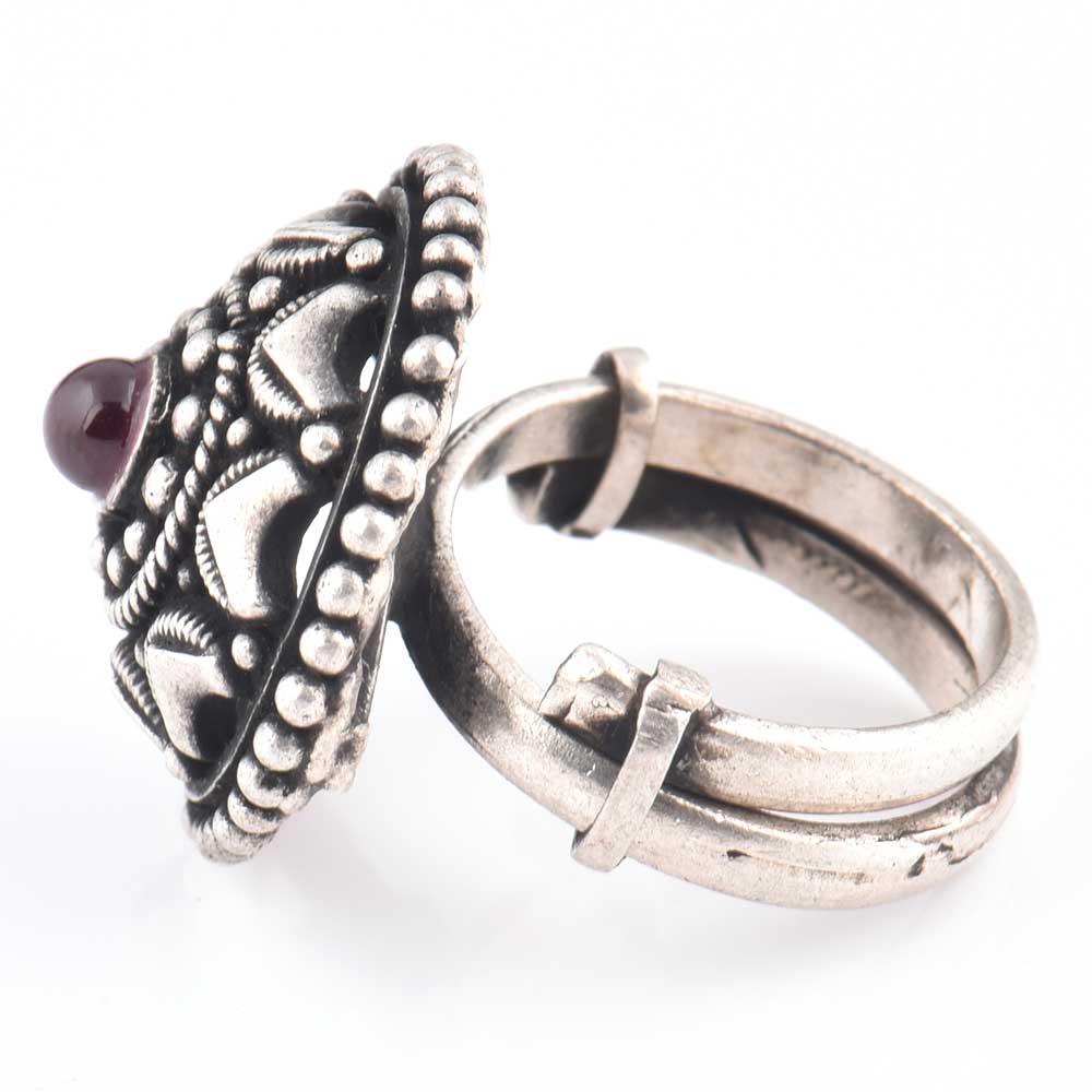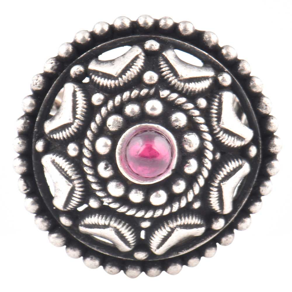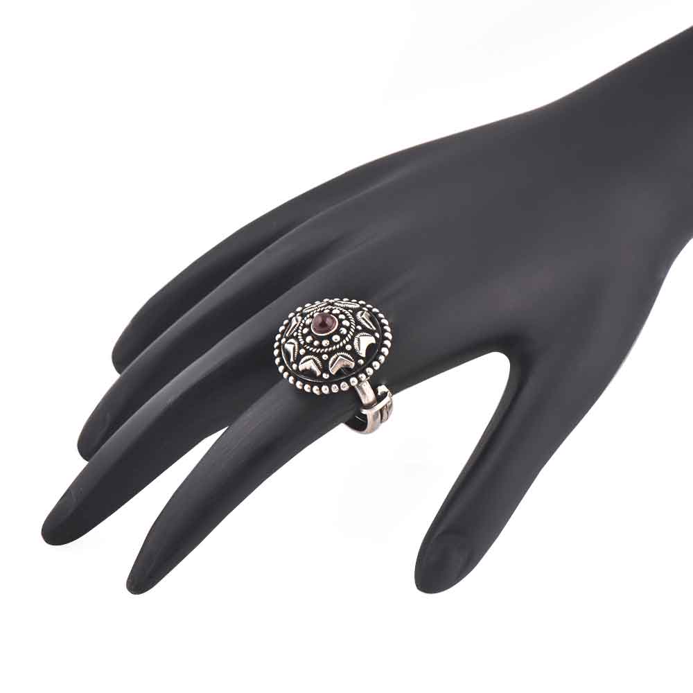 Starry Dotted 92.5 Sterling Silver Ring Oxidized With Amethyst Stone Centre (Free Size)