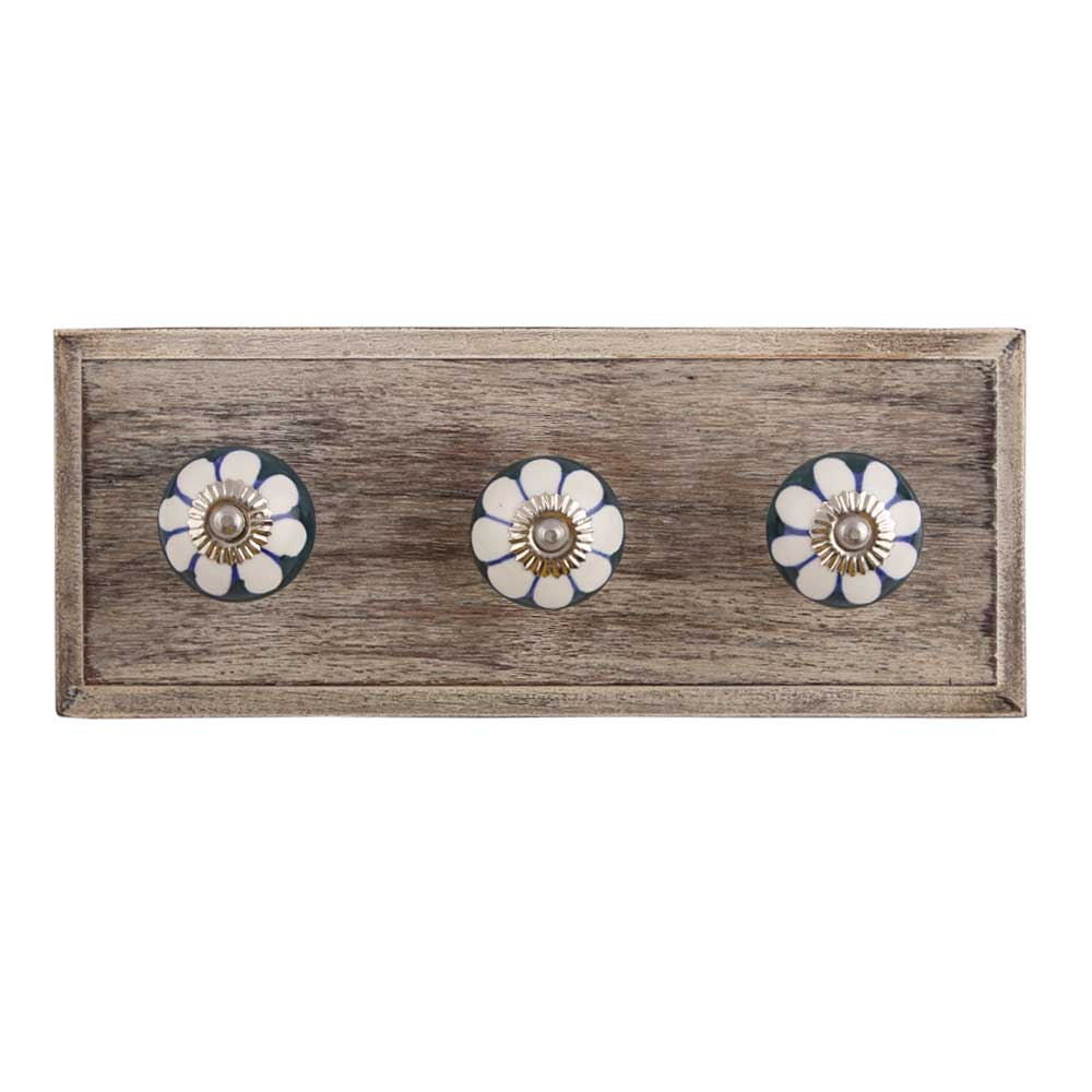 Stephanotis Ceramic Wooden Hook. A Perfect Complement to the Soft Tone of the Wood are these White Traditional Hat & Coat Hook Made of Genuine Porcelain and Brass. It can be use to Hang Jewellery, Leashes, Towels, Scarves, Light Weight Sweaters, Caps Etc.