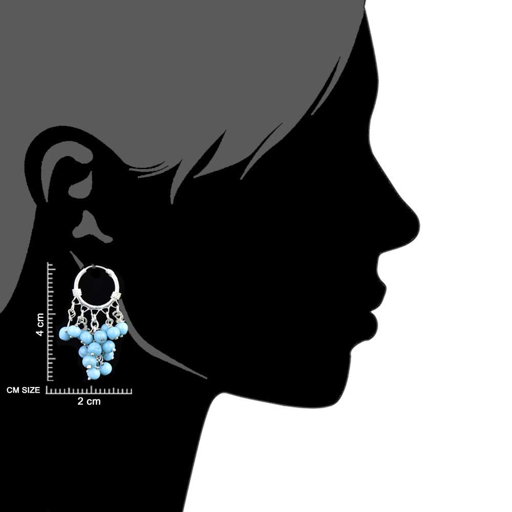 Sterling Silver Dangle Earrings With white Moon Stone Beads in the shape of grape bunch hanging from round silver hoop earrings. Birthday, Anniversary, Wedding, Engagement. Gift It To That Someone Special Whom You Love And They Will Cherish It Forever.