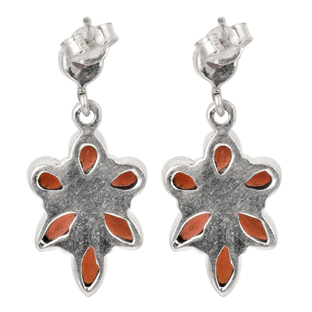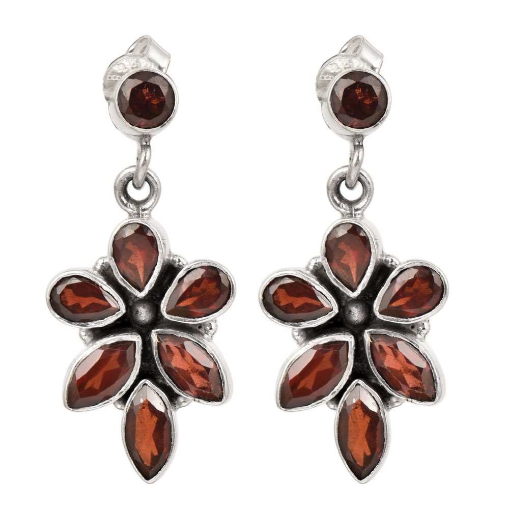 • Sterling Silver Earrings Garnet Handcrafted Floral Dangle Earrings