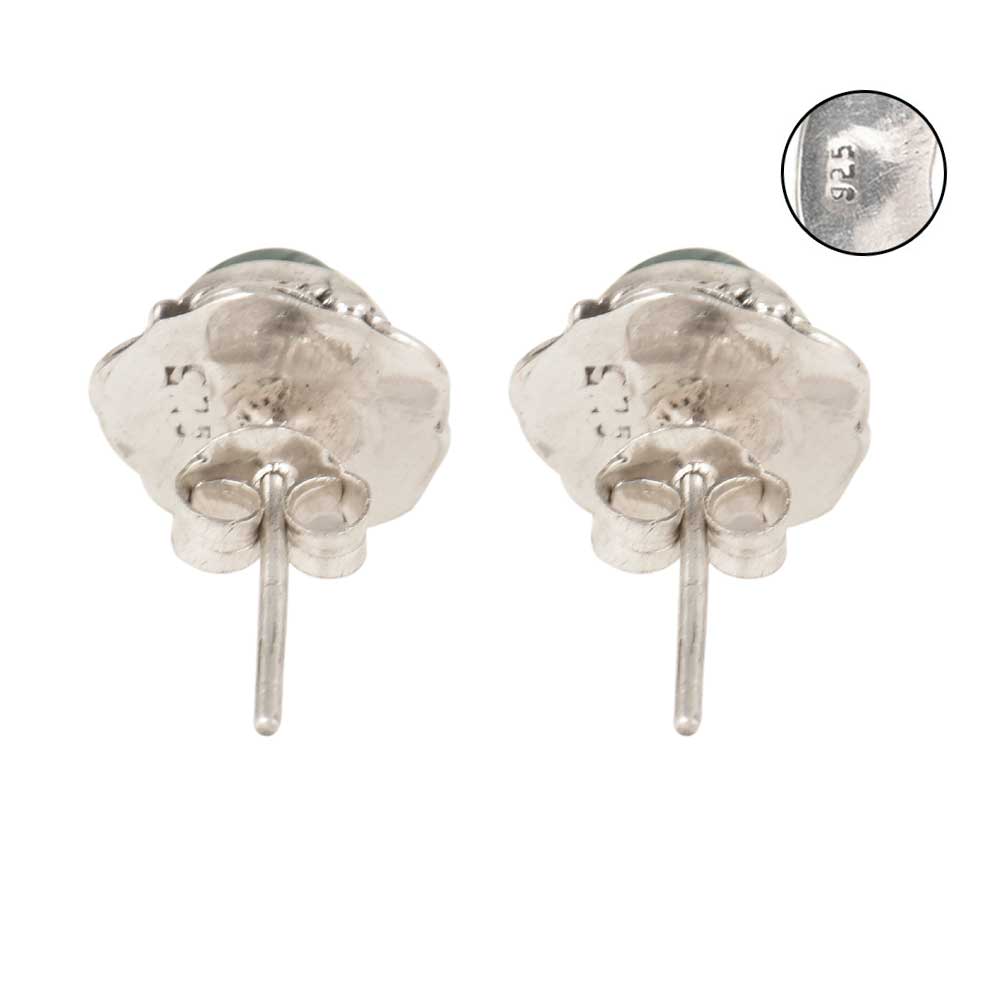 Sterling Silver Earrings Green Malachite Engraved Studs
