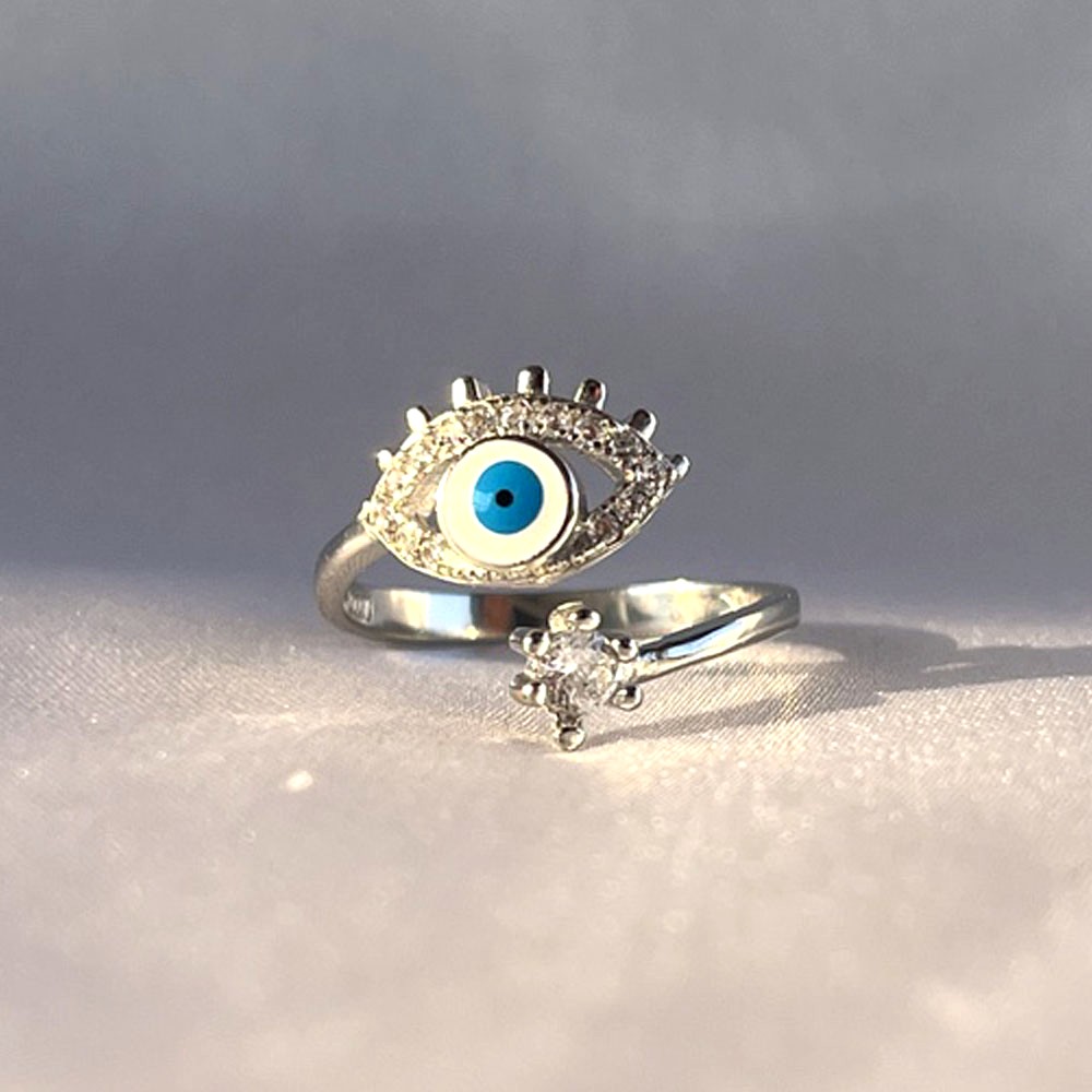 • Sterling Silver Light Blue Evil Eye Lash Ring