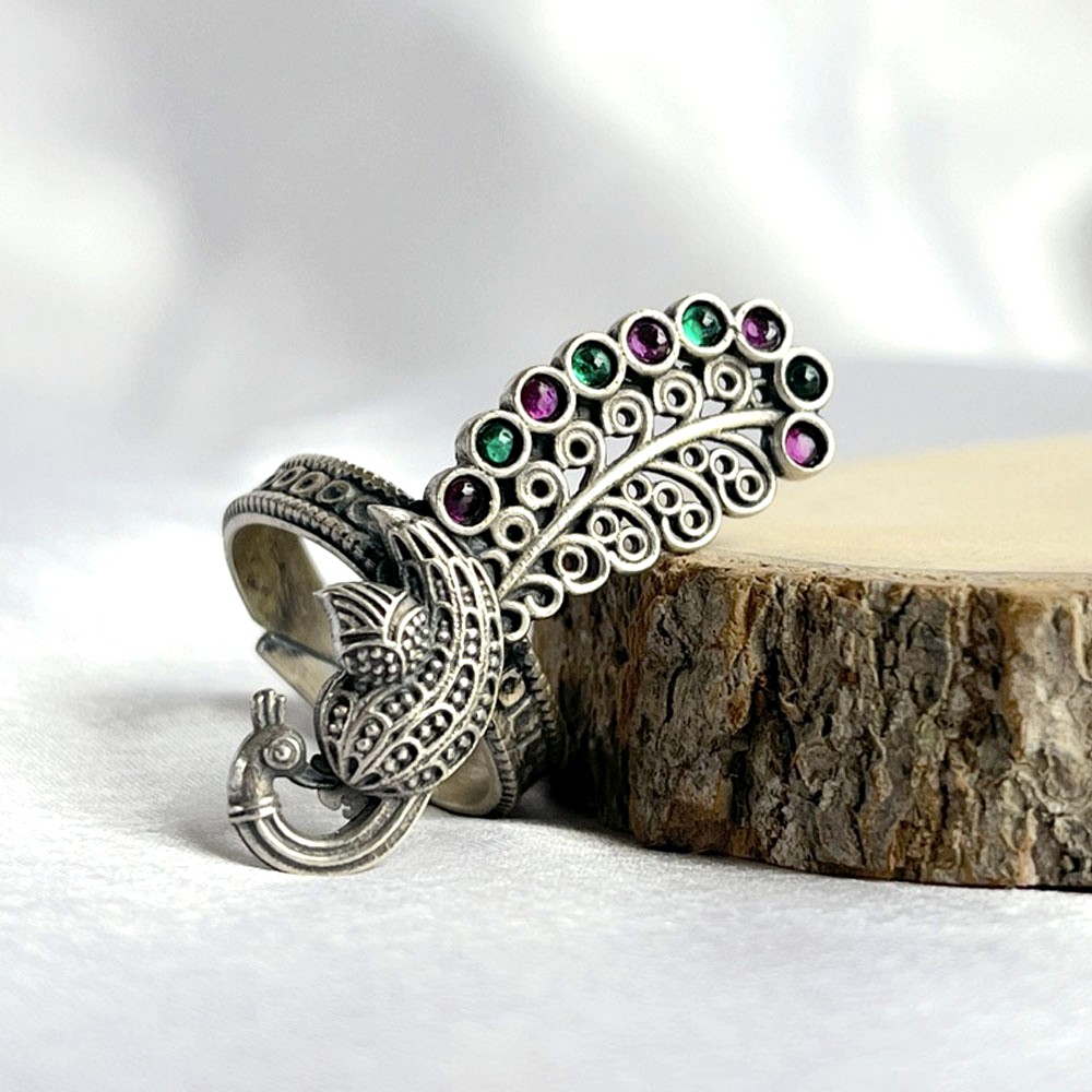 • Sterling Silver Peacock Cocktail Adjustable Statement Ring