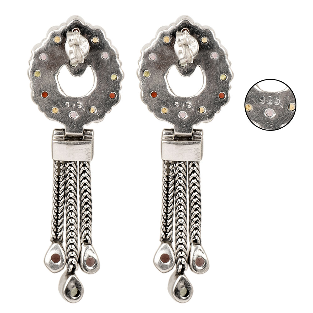 Embrace the dazzling brilliance exuding from these colorful stones stud earrings and 92.5 sterling silver tassel hanging. Set in a frame of sterling silver, the captivating charm of these beauties will capture the attention for you. Perfect casual and formal wear.
