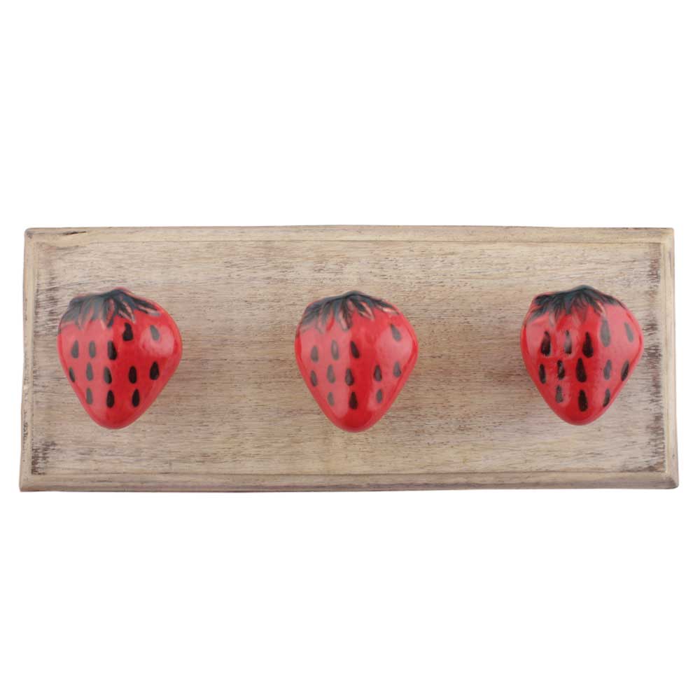 Strawberry Ceramic Wooden Hooks. A Perfect Complement to the Soft Tone of the Wood are these White Traditional Hat and Coat Hook Made of Genuine Porcelain and Brass. It can be used to Hang Jewelry, Leashes, Towels, Scarves, Light Weight Sweaters, Caps etc.