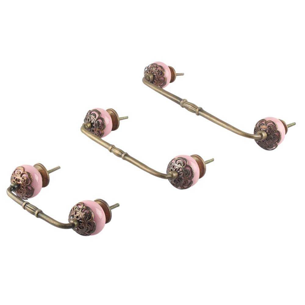 Strewn Pink Ceramic Bridge Handle. Ideal for Drawer, Dresser, Cabinet, Wardrobe, Cupboard and Almirah.