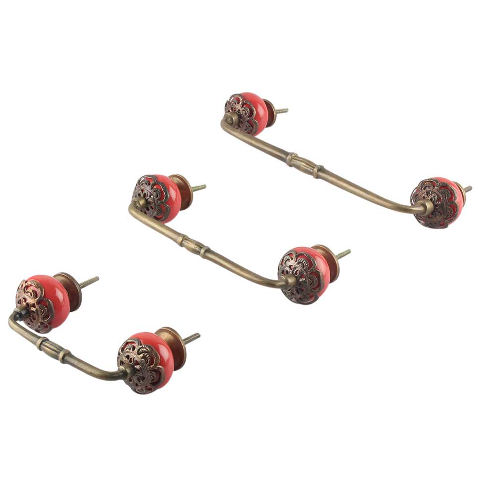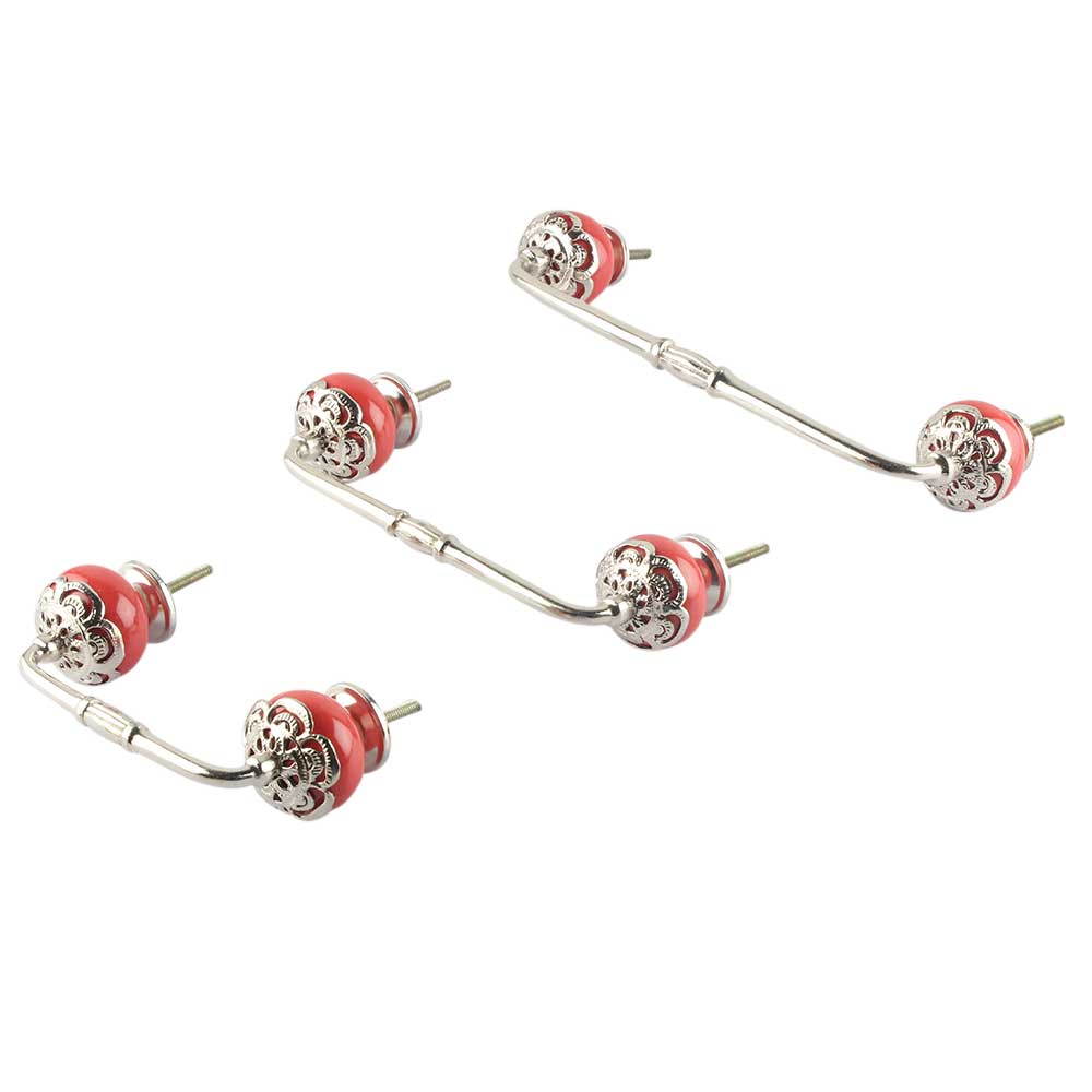 Strewn Red Ceramic Bridge Handle. Ideal for Drawer, Dresser, Cabinet, Wardrobe, Cupboard and Almirah.