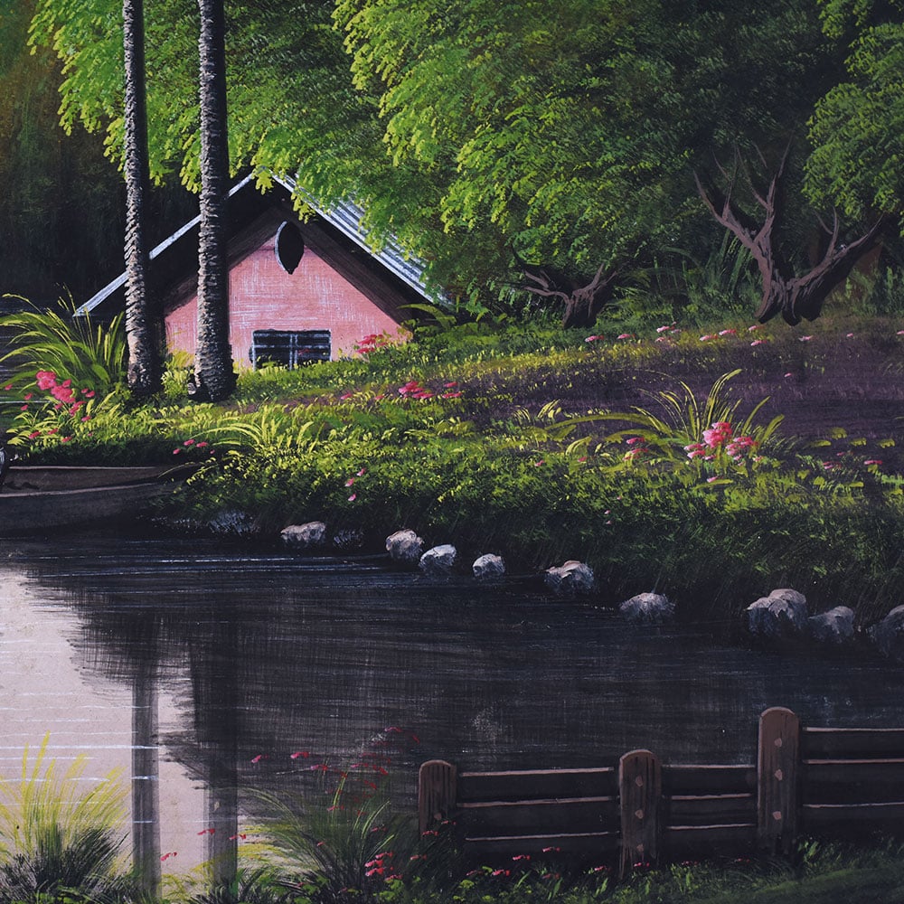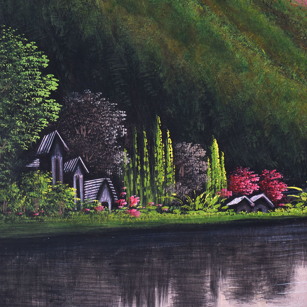 Bring the beauty of nature into your home with this stunning paper painting of a serene landscape. Capture the magic of the outdoors and transform any space into a tranquil oasis. This paper painting is more than just wall decor - it's a window to the great outdoors. Gaze upon the peaceful pastoral setting and feel your worries melt away. The attention to detail in each leaf, rock, and ripple of the water will have you lost in the scene, reconnecting with the beauty of the natural world. Whether you're looking to brighten up a bare living room wall, bring serenity to your bedroom, or add a touch of elegance to your office, this paper painting is the perfect solution. It makes a stunning centerpiece that will elevate your space and soothe the soul. Treat yourself to this nature-inspired masterpiece, or give it as a thoughtful gift that will be cherished for years to come.