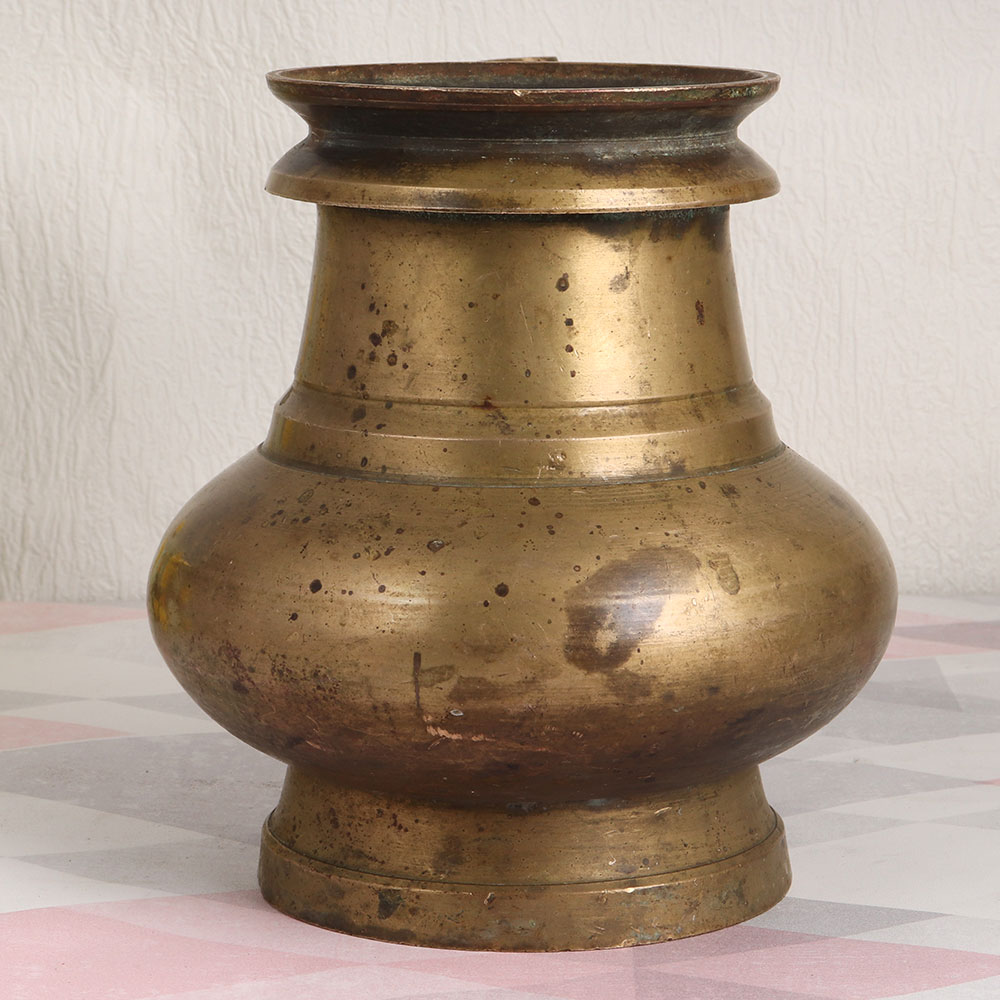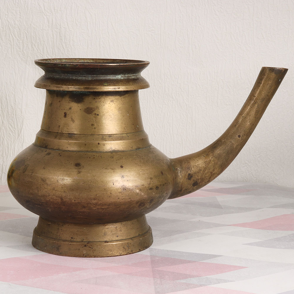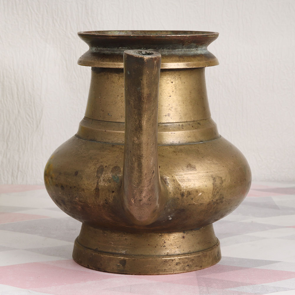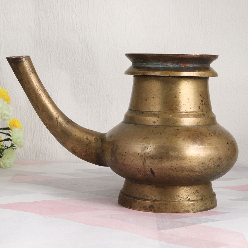 Enhance your living space with a touch of timeless elegance and spiritual significance through this exquisite Vintage Brass Holy Water Pot. Handcrafted by skilled Indian artisans using the traditional techniques of South Indian art, this piece is a testament to their craftsmanship. Crafted from high-quality brass, the antique brown finish adds an aura of rustic charm, making it a versatile addition to any setting. Whether you place it at home, in your office, a restaurant, hotel, cafe, or shop, this pot doubles as an indoor flower vessel, adding a graceful touch to your decor. But its purpose extends beyond aesthetics. This holy water pot is designed to serve in sacred rituals, havans, and other auspicious occasions, making it a cherished part of your religious practices. It offers the perfect means to dispense holy water to devotees, symbolizing purity and blessings. As an exquisite antique piece, it's a valuable addition to any vintage collection, and it makes for an ideal gift for your loved ones on special, festive, or auspicious occasions.