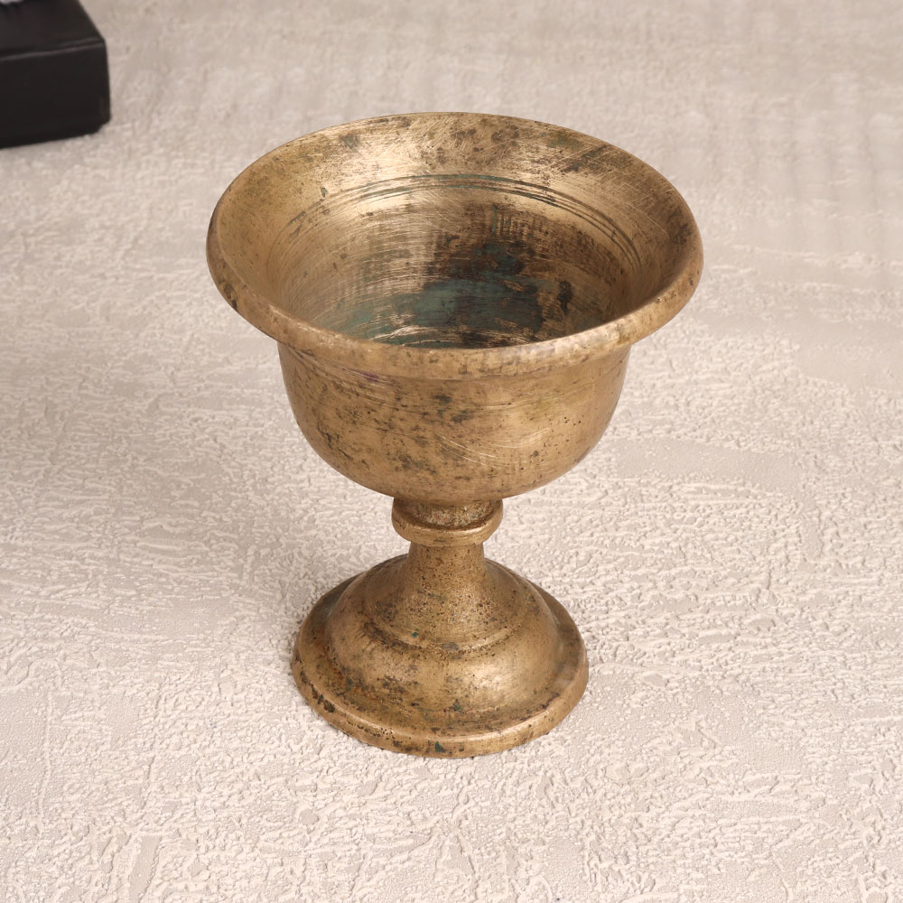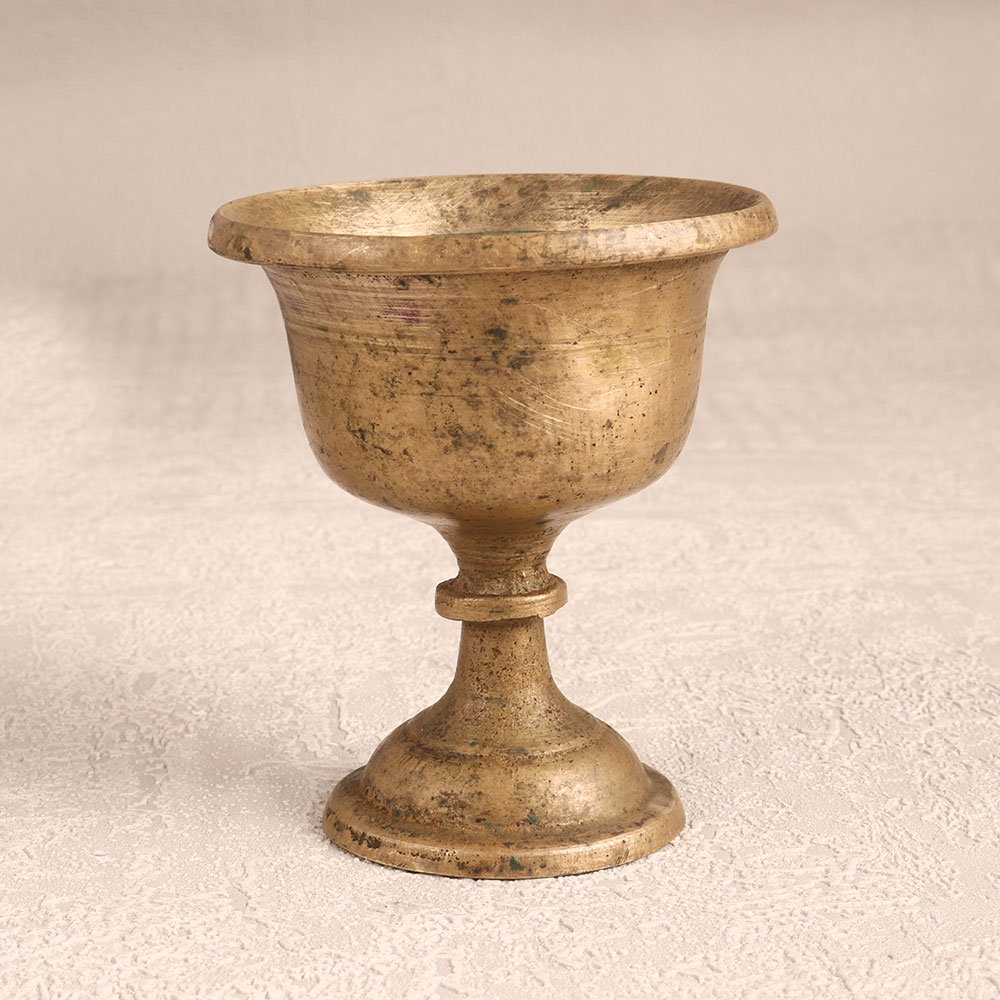 Enhance your spiritual and decorative ambiance with this exquisite Vintage Brass Holy Kumkum Bowl Cup which is a true testament to South Indian artistry. Meticulously crafted by professional Indian artisans, this masterpiece is a celebration of tradition and craftsmanship. Handmade with precision and care, this kumkum bowl showcases a stunning antique brown finish, adding a touch of timeless elegance to any setting. Crafted from high-quality brass, it not only exudes an aura of authenticity but also ensures longevity, making it a cherished heirloom for generations to come. This versatile piece serves a dual purpose as both a prayer accessory for holding kumkum, tilak, or bindi, and a captivating decor item. Whether you place it in your home, office, restaurant, hotel, or cafe's prayer room, it will infuse a sense of reverence and aesthetics into the space. As a thoughtful and meaningful gift, this kumkum bowl is perfect for special, festive, or auspicious occasions.