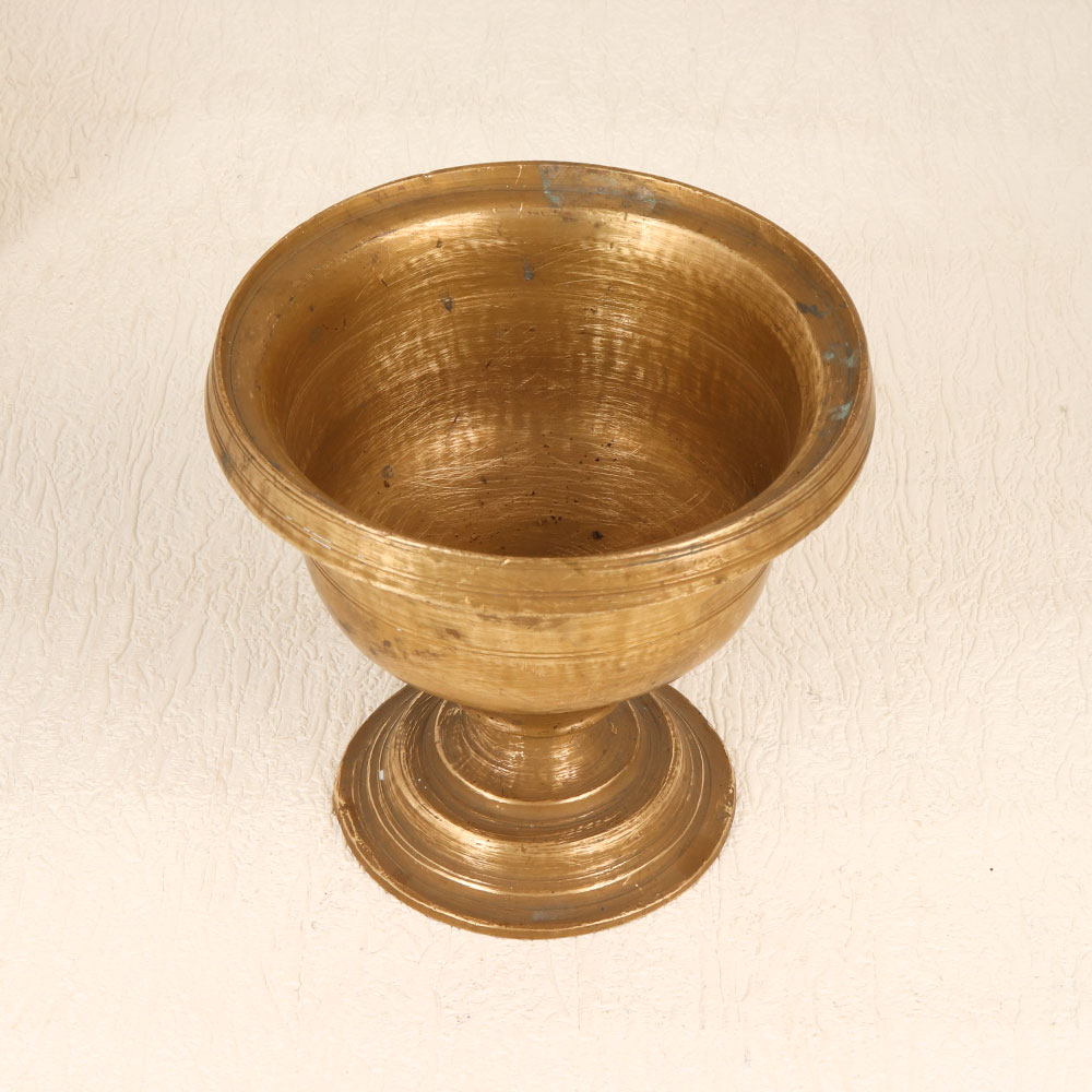Buy a Vintage Brass Holy Kumkum Cup online that is a cherished relic meticulously crafted by skilled Indian artisans. This exquisite piece, boasting a rich antique brown finish, serves as a symbol of divine elegance and cultural heritage. Handmade from high-quality brass, the cup is designed to hold the sacred kumkum tilak used in prayers, rituals, and havans. Its intricate detailing and vintage charm make it a captivating addition to any prayer room, whether at home, in an office, restaurant, hotel, or cafe. The cup's timeless design is a testament to the artistry and craftsmanship passed down through generations. Beyond its spiritual significance, this brass kumkum cup also makes for a thoughtful gift. Share the blessings of tradition with your loved ones on special, festive, or auspicious occasions. Whether adorning a personal prayer space or contributing to a vintage collection, this holy kumkum cup is a unique piece that transcends time, blending spirituality with artistic beauty.