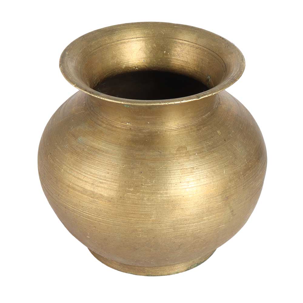 A sturdy water pot or lota made of the best brass to create a remarkable impression in interiors. Add a charming look to your interiors with this brass water jug. As it is handcrafted by skilled Indian artisans using traditional methods, it suits any type of interior design and enhances the decor. Water pots play an important role in auspicious occasions, rituals and havans in storing holy water, rice or milk. Its large belly and small opening make it eye-catching for decoration and vintage collection. Place this artefact as a flower pot on the table, shelf or altar. Give this brass lota to your family, friends or relatives on special and festive occasions.