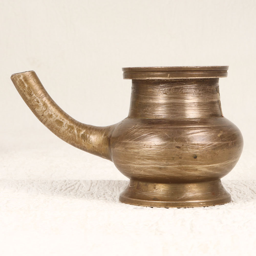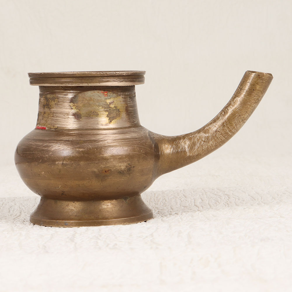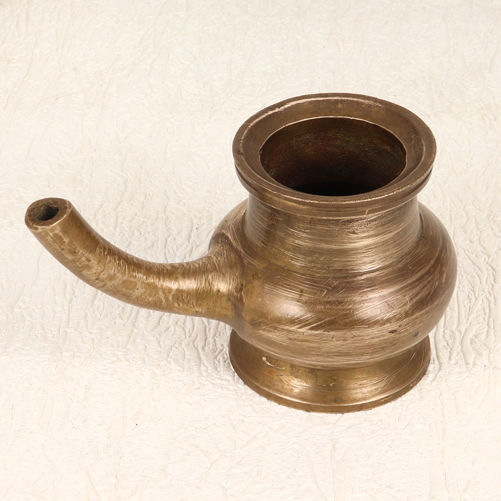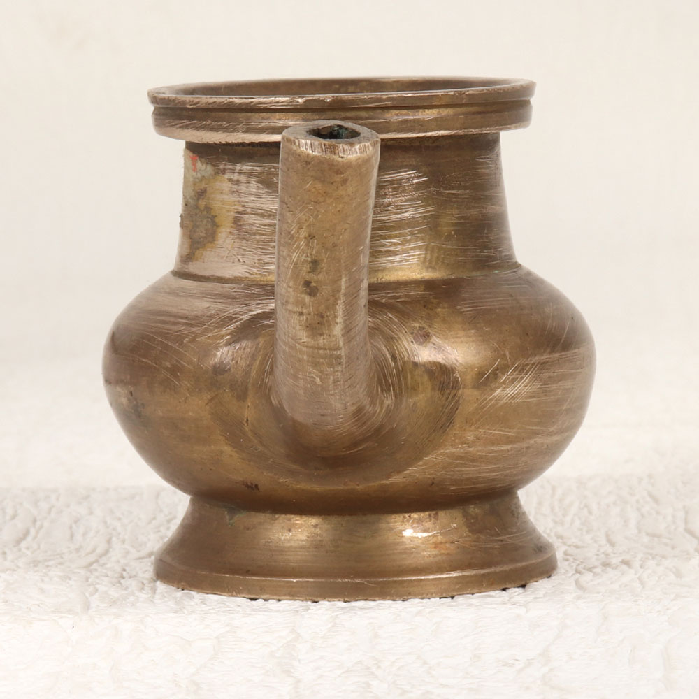 This Vintage Brass Pot with Spout is meticulously handcrafted by highly skilled and experienced artisans from South India. Fashioned from high-quality brass, this exquisite piece serves a sacred purpose as it takes center stage during prayers, rituals, and havans, holding the purest holy water. The antique brown finish adds a touch of historic charm, resonating with the rich cultural heritage of the Indian subcontinent. This vintage pot is not just a religious artefact but a versatile addition to any space, be it at home, in an office, restaurant, hotel, or cafe prayer room. Its elegant design and antique allure make it an impeccable choice for both religious ceremonies and aesthetic decor. Placing this brass pot not only elevates the spiritual ambiance but also enhances the visual appeal of any environment. Crafted with precision, this handmade brass pot is more than just a functional item; it's a piece of art that can be proudly displayed as part of a vintage collection. Additionally, it makes for a thoughtful and meaningful gift for loved ones on special, festive, or auspicious occasions, symbolizing the timeless connection between tradition and modernity.