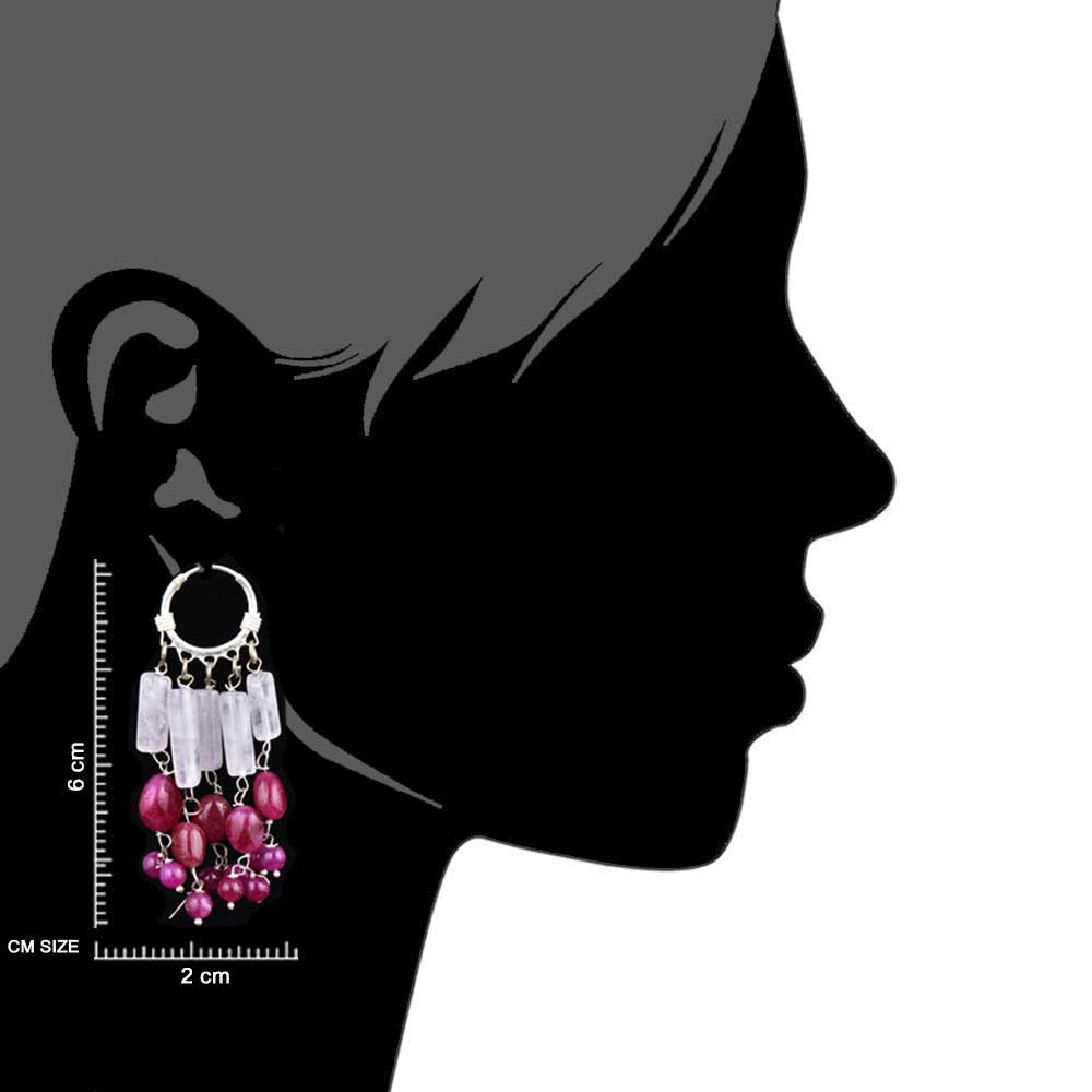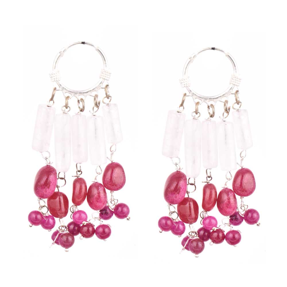Stylish Pink Beads Trendy Sterling Silver Chandelier Earring
