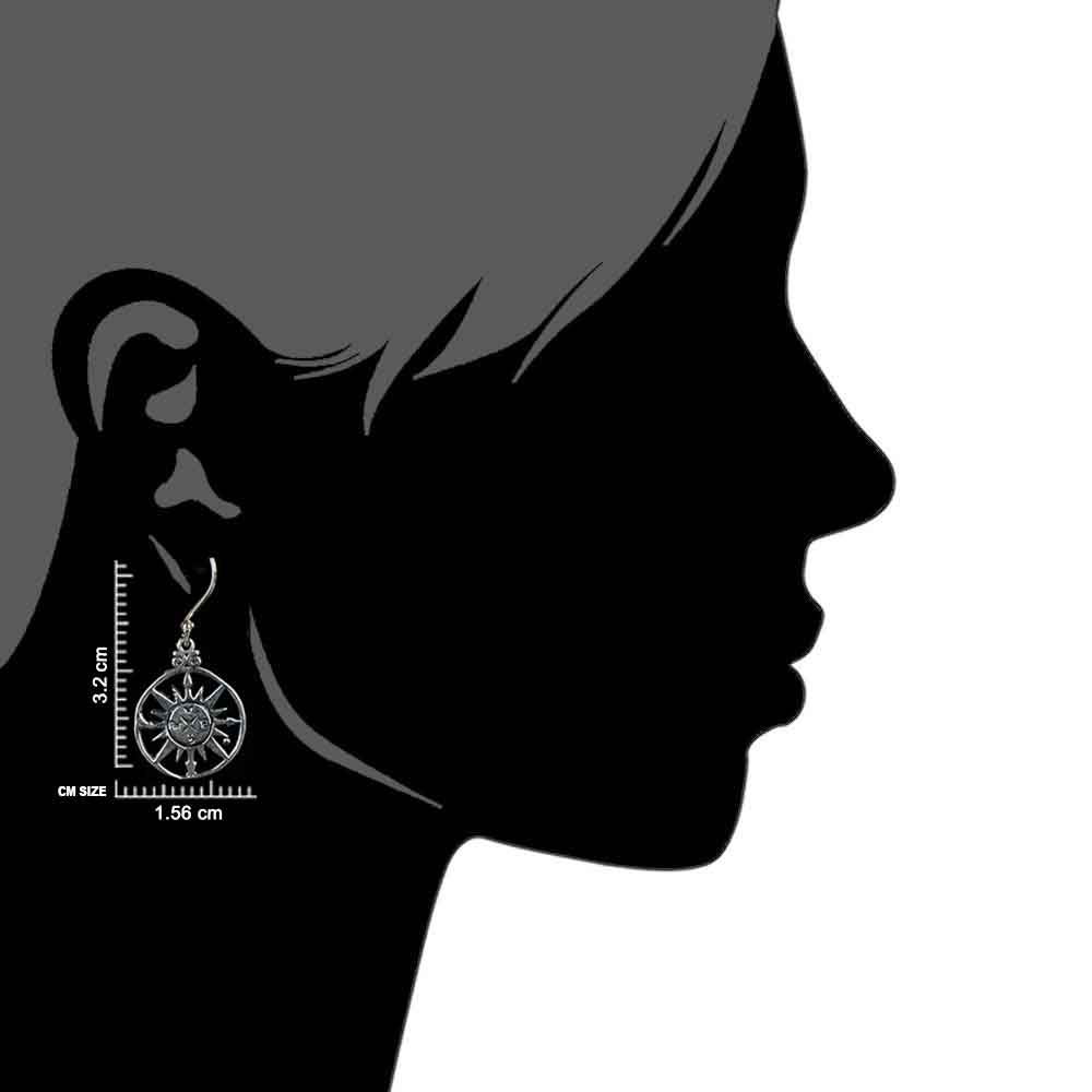 Sun Design Symbols 92.5 Sterling Silver Earrings With Circular Border